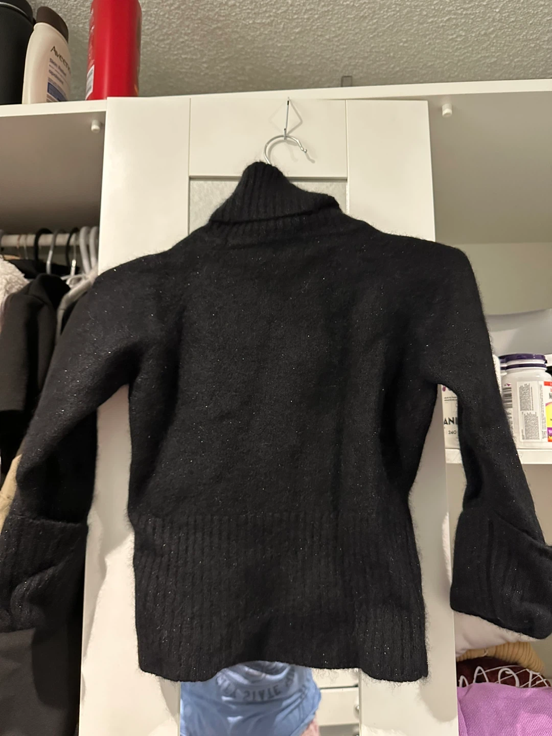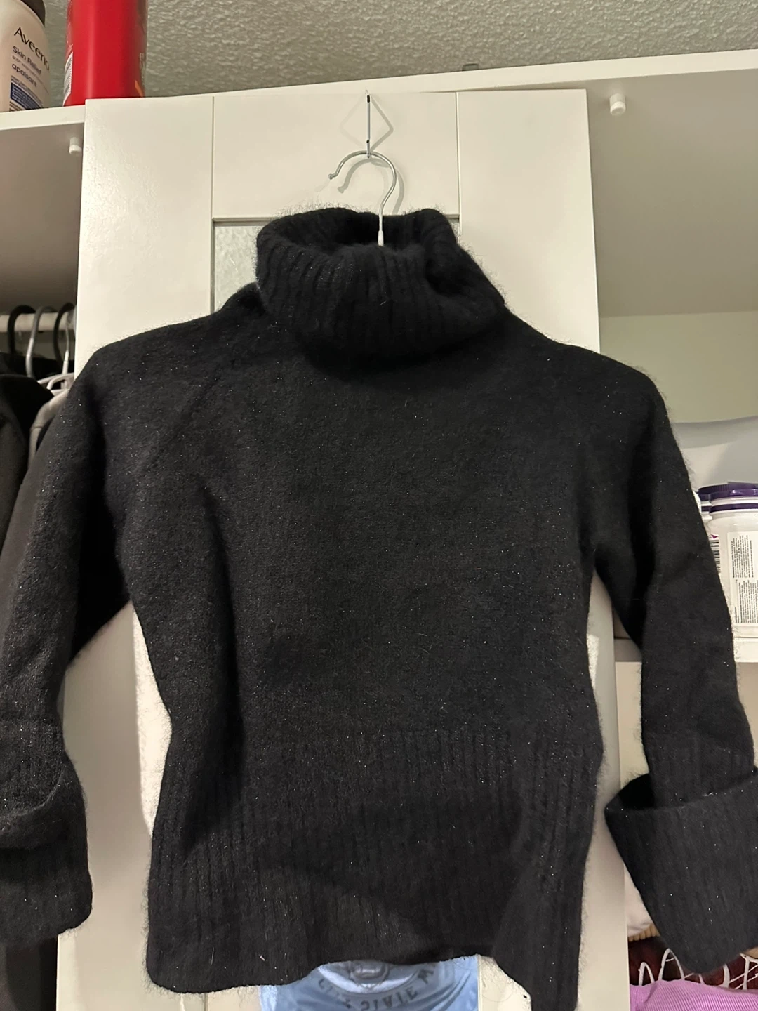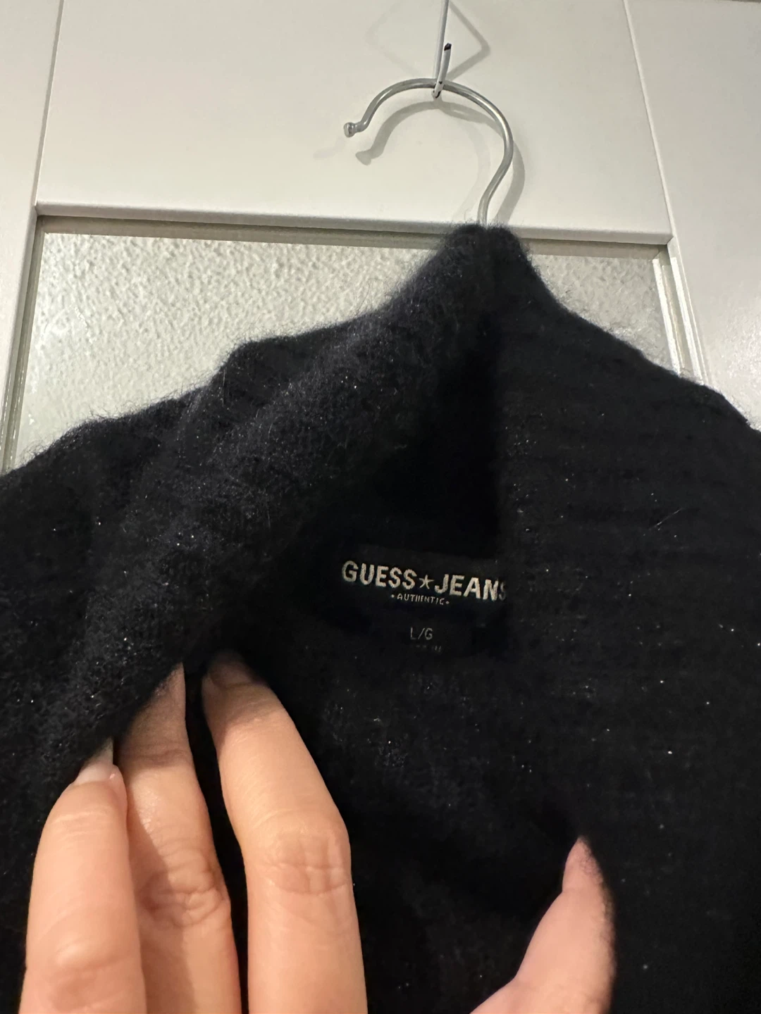 Cozy black turtleneck sweater from Guess Jeans! It's a size large and in great condition. Perfect for layering or wearing on its own during the cooler months