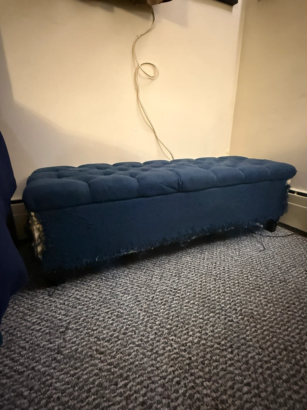 Selling a Christopher Knight Home storage ottoman in dark blue.