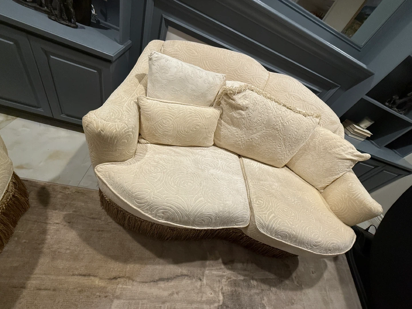 Beige Three-Seater Sofa with Pillows