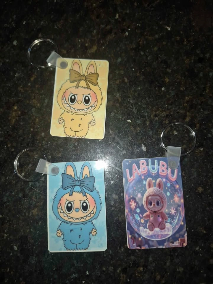 Labubu bookmarks, iron on patches, keychains and stickers (8 pack). $4 each or 3 for $10