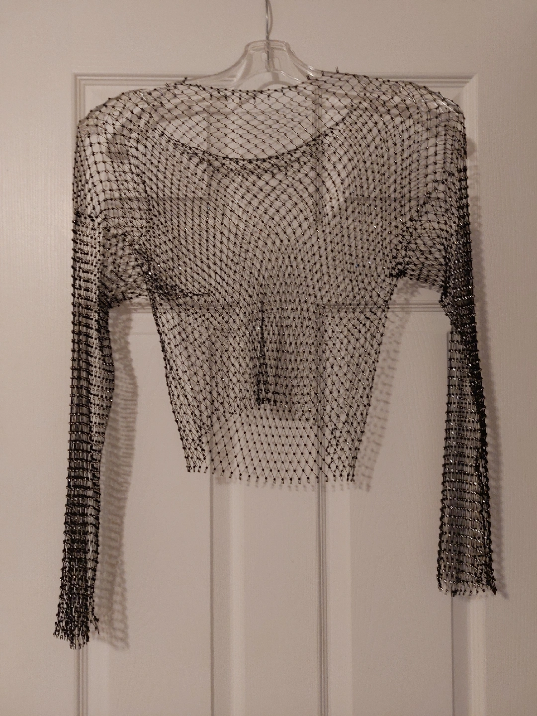 87Selling a black mesh long sleeve top. It's in great condition and perfect for layering or a night out. The material is lightweight and breathable.