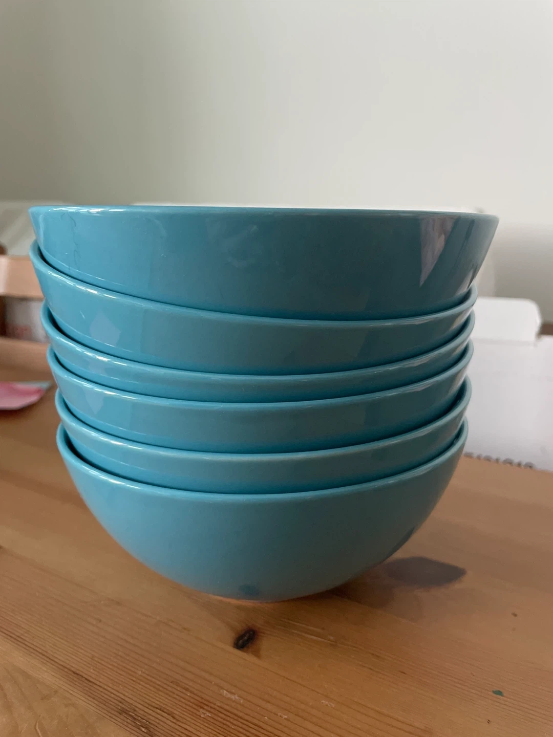 Selling a set of 6 lovely blue bowls! They're in great shape and ready for a new home. Perfect for everyday use or adding a pop of colour to your kitchen.