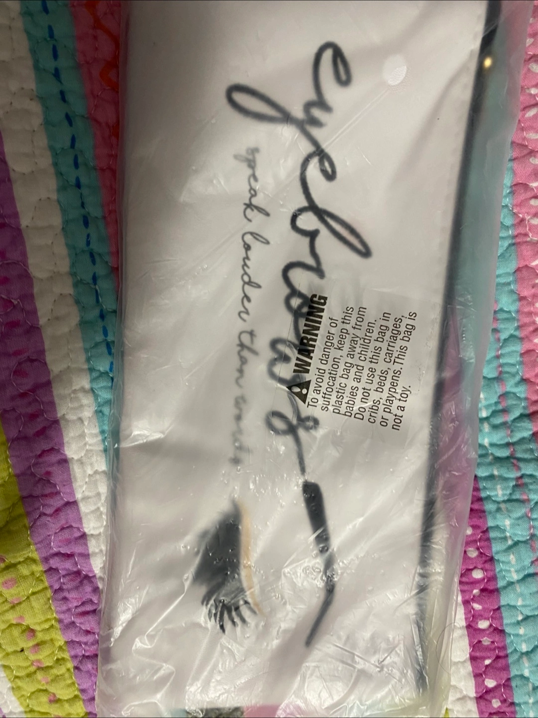 10I'm selling a brand new eyebrow makeup bag! The design says, "eyebrows speak louder than words". It's still in its original packaging and ready for a new home
