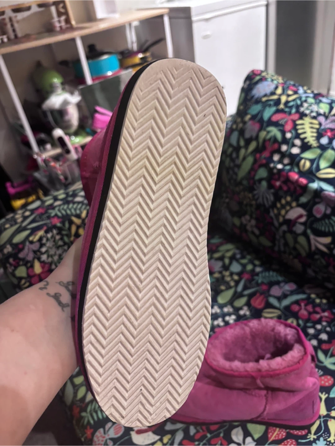 Purchased from Poshmark, but they were too big for me. A couple of small water stains on the toes. Visible repair on the inside of one of the boots. Not noticeable at all when Warren. Insides and bottoms show no signs of wear.