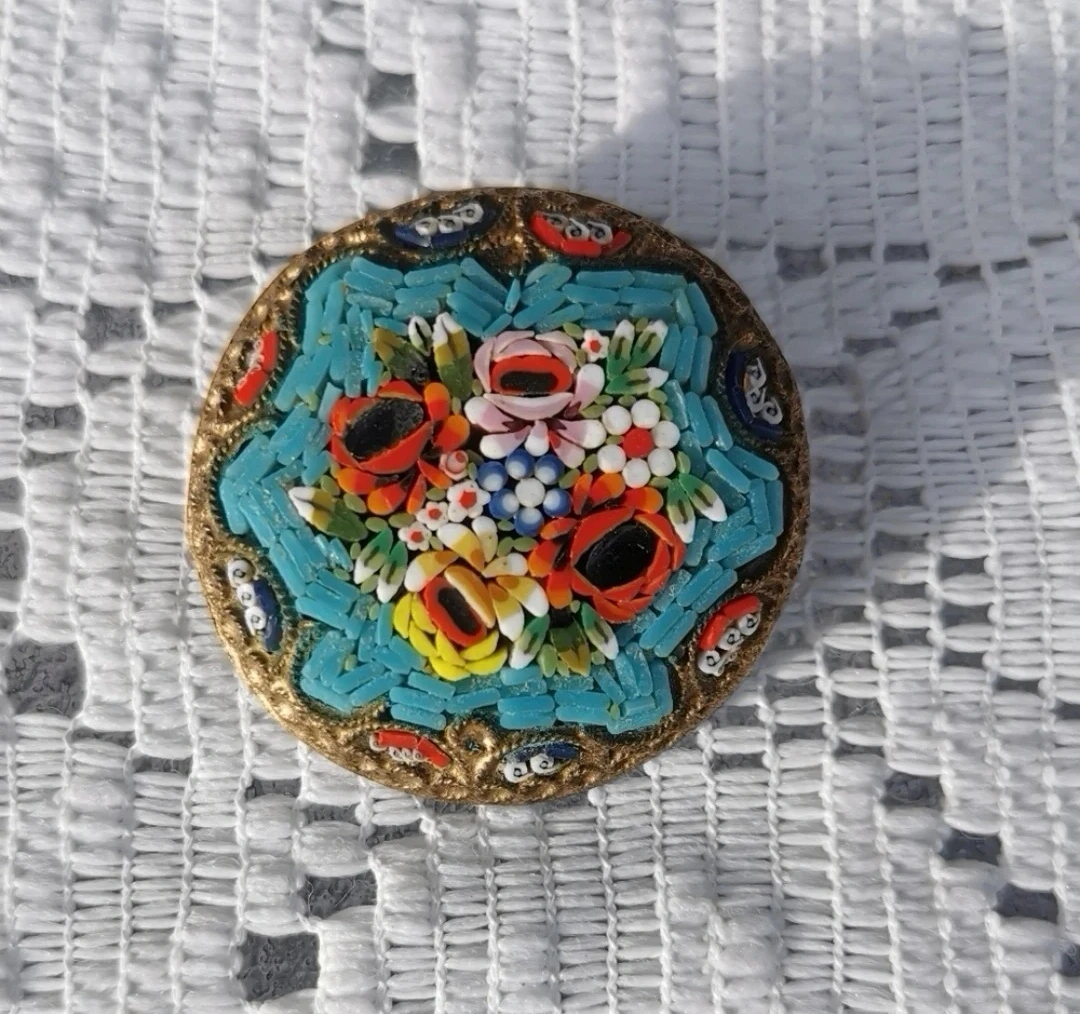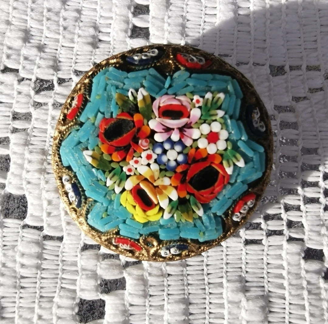 Beautiful Vintage Micromosaic Oval Pin Brooch