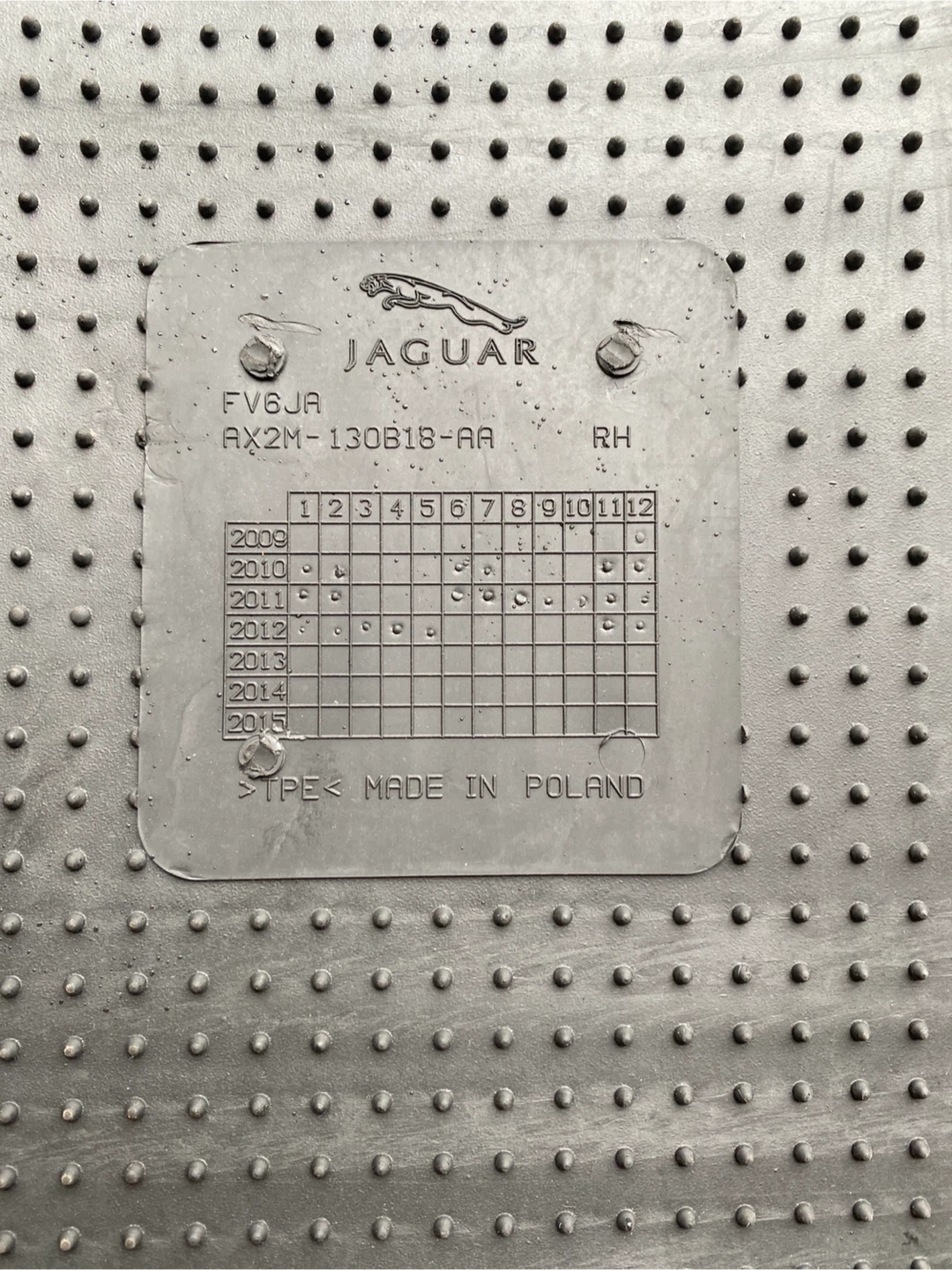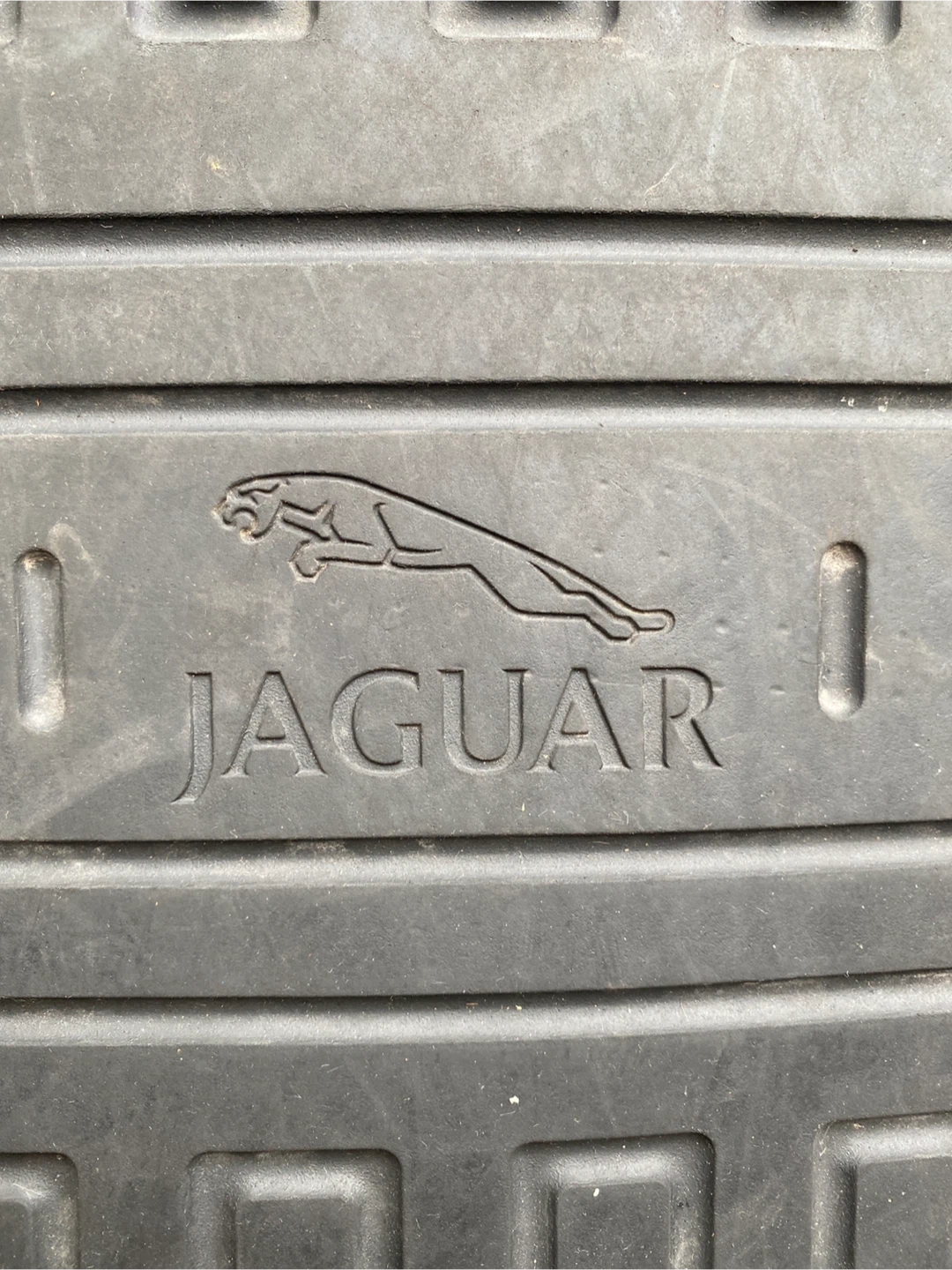 They are made of a durable rubber material. The mats have a textured surface with small raised dots for grip. They also feature the Jaguar logo. Good very condition!