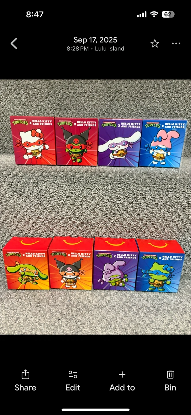 Selling these adorable Teenage Mutant Ninja Turtles X Hello Kitty and Friends collectibles! They're in great condition and ready for a new home. Perfect for collectors or anyone who loves these iconic characters