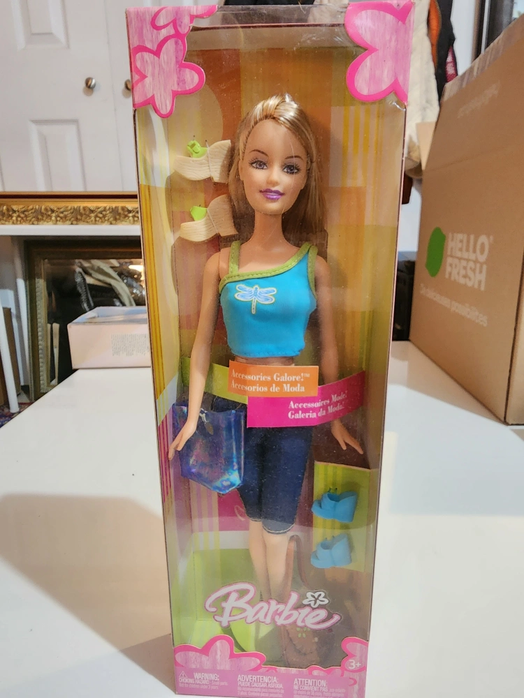 384This is a new in box Mattel Barbie Accessories Galore doll, perfect for collectors or kids who love fashion play! This Barbie comes with a variety of mix and match accessories, so you can create endless stylish looks. * Brand: Mattel * Character: Barbie * Series: Accessories Galore This Barbie is looking for a new home! If you see this listing, it means she's still available, ready to bring joy and fashion fun to her next owner. Based on similar listings on Kijiji, this Barbie doll is priced competitively. Given it's new condition, the price reflects its value as a collectible item.