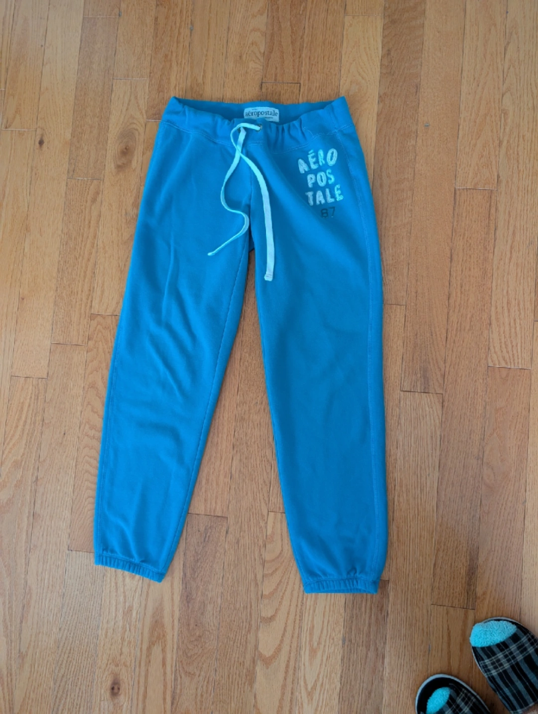 Cozy up with these Aeropostale teal sweatpants! They're a comfy size medium and in great condition. Perfect for lounging around or running errands. The material is 70% cotton and 30% polyester, making them soft and durable