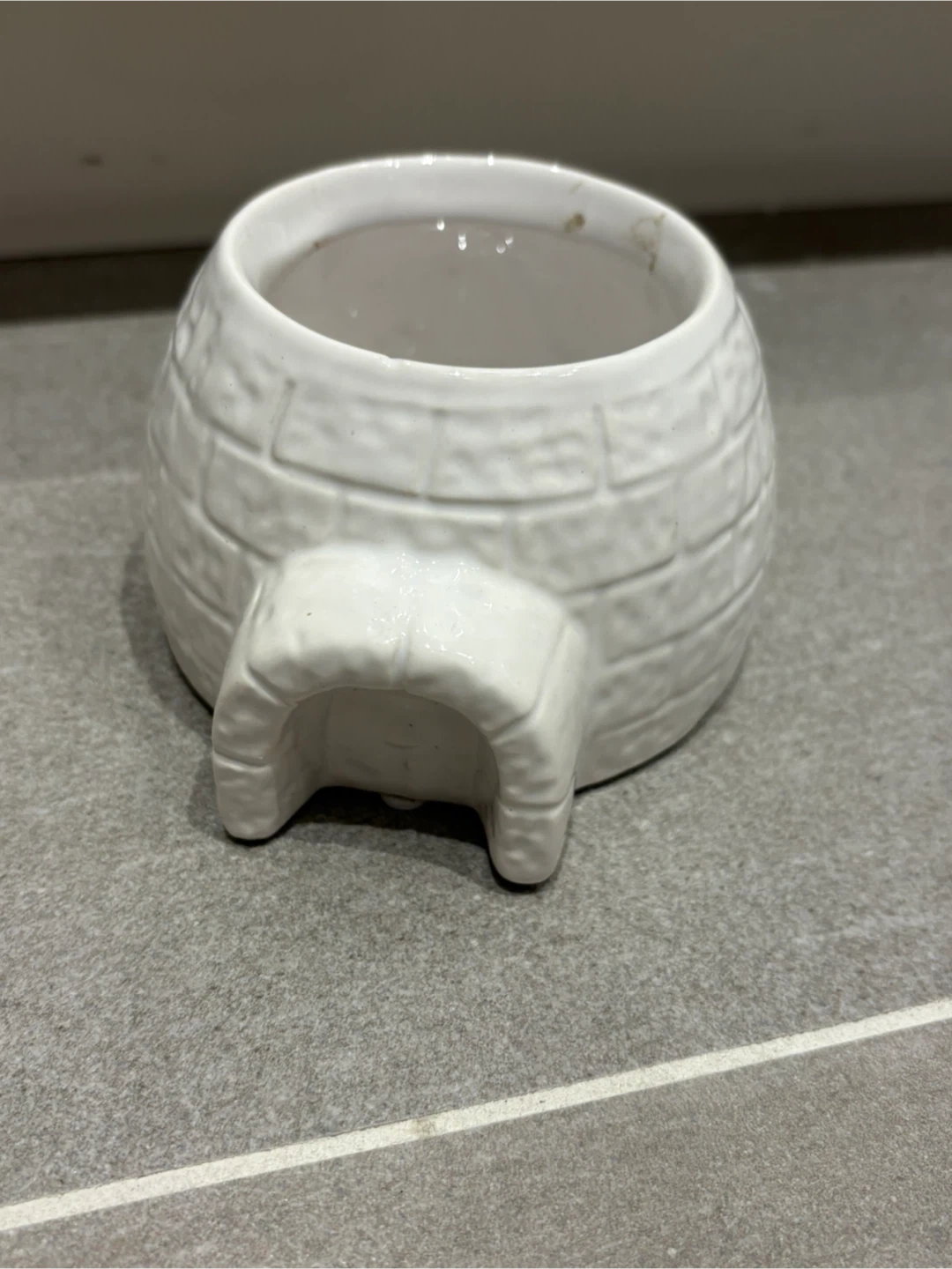Selling a cute igloo-shaped ceramic plant pot. It's in great condition and perfect for small items or decor. The white ceramic material gives it a clean, modern look! It would be a fun addition to any room