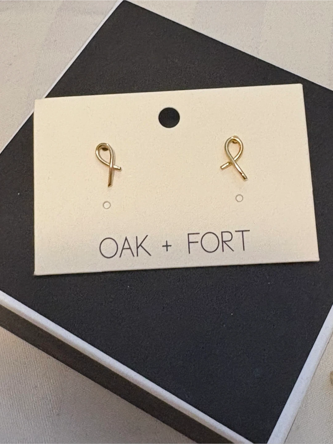 Brand new Oak + Fort gold ribbon stud earrings! These cute and simple earrings are perfect for everyday wear or to dress up any outfit. They come on their original card.