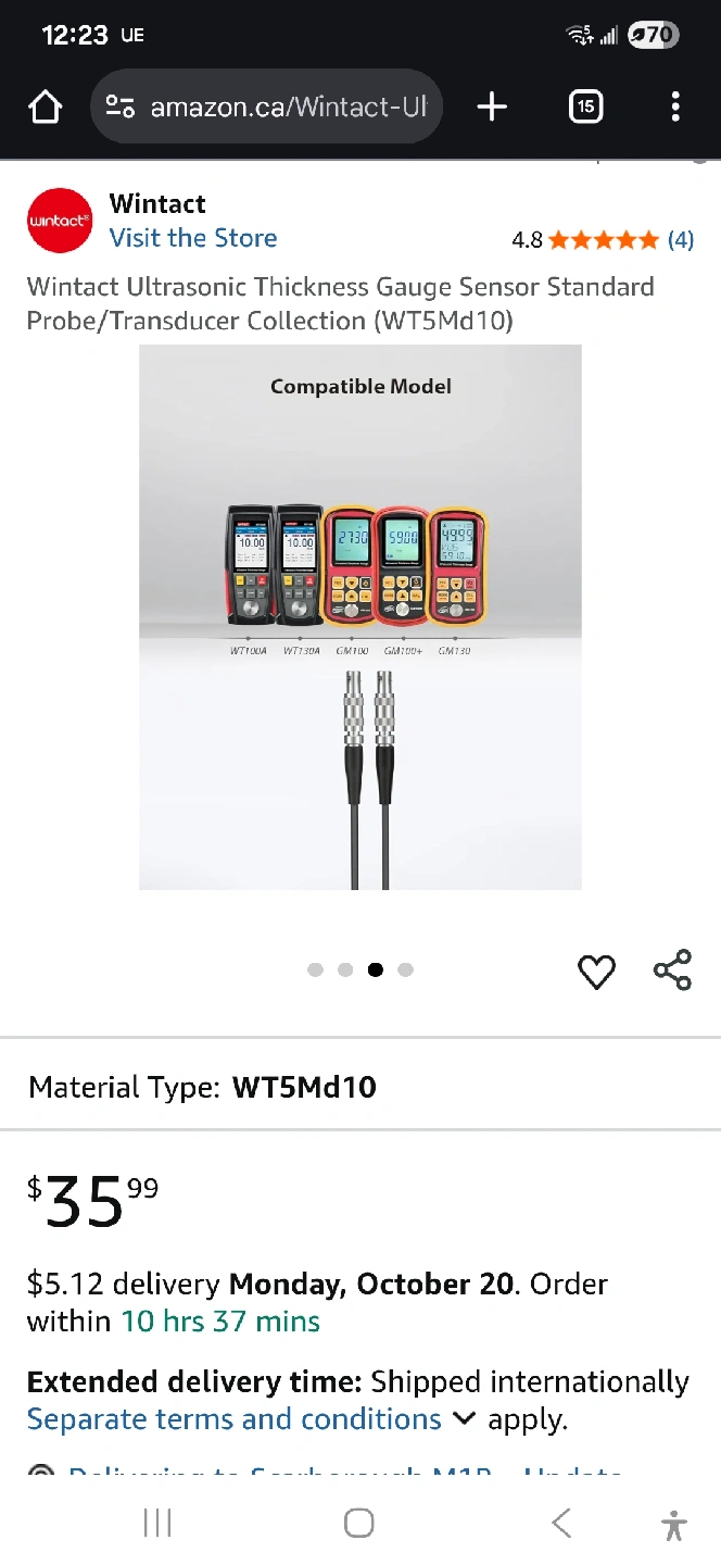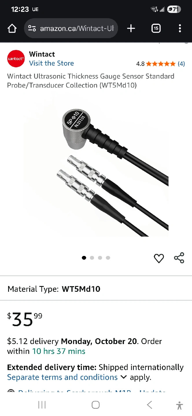 197Selling a Wintact Ultrasonic Thickness Gauge Sensor Standard Probe/Transducer Collection (WT5Md10).