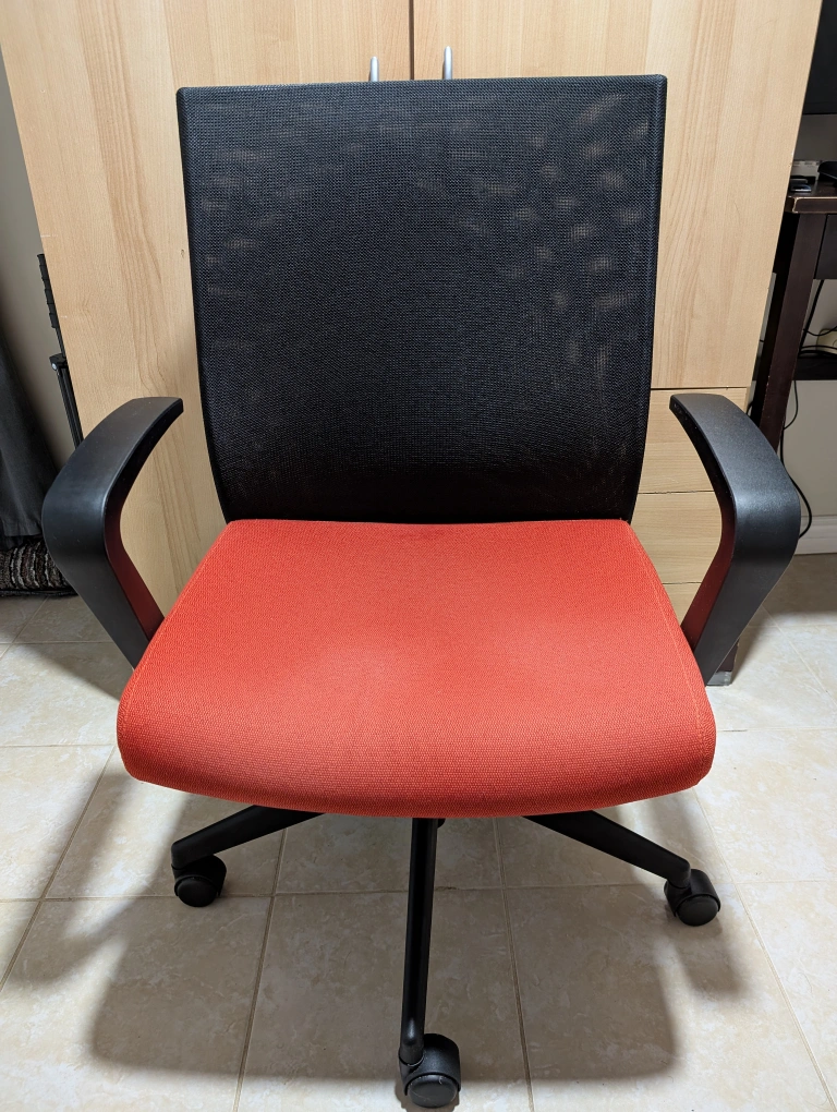 Office Chair - Red Orange Seat, Black Mesh Back