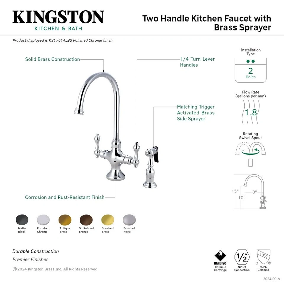 Kingston Brass Vintage Two-Handle 2-Hole Deck Mount Kitchen Faucet with Brass Sprayer priced to sell