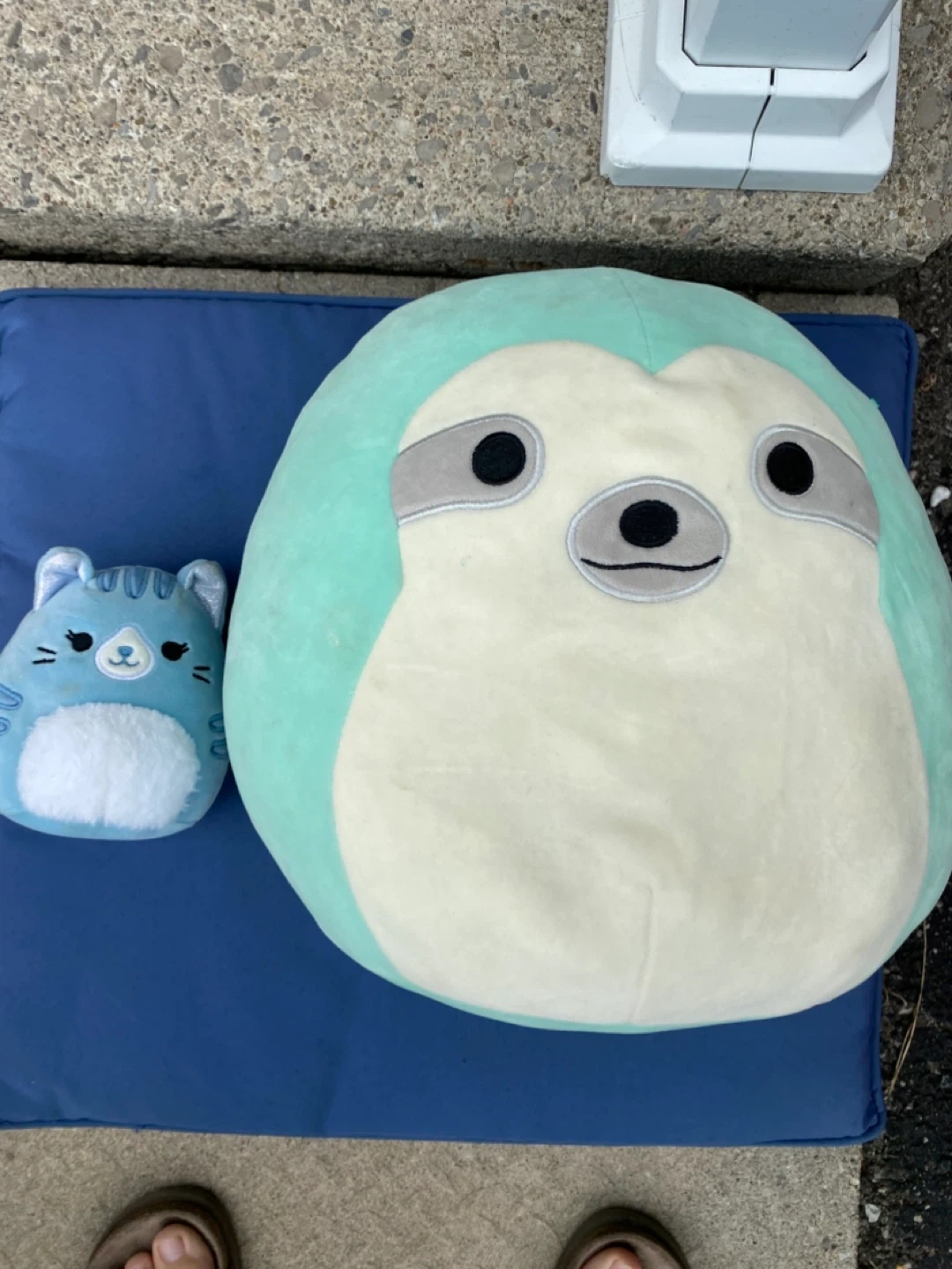 10Selling two cute Squishmallow plush toys! There's a larger sloth and a smaller cat. Both are in okay condition. Would need a wash possibly. Hence the price.