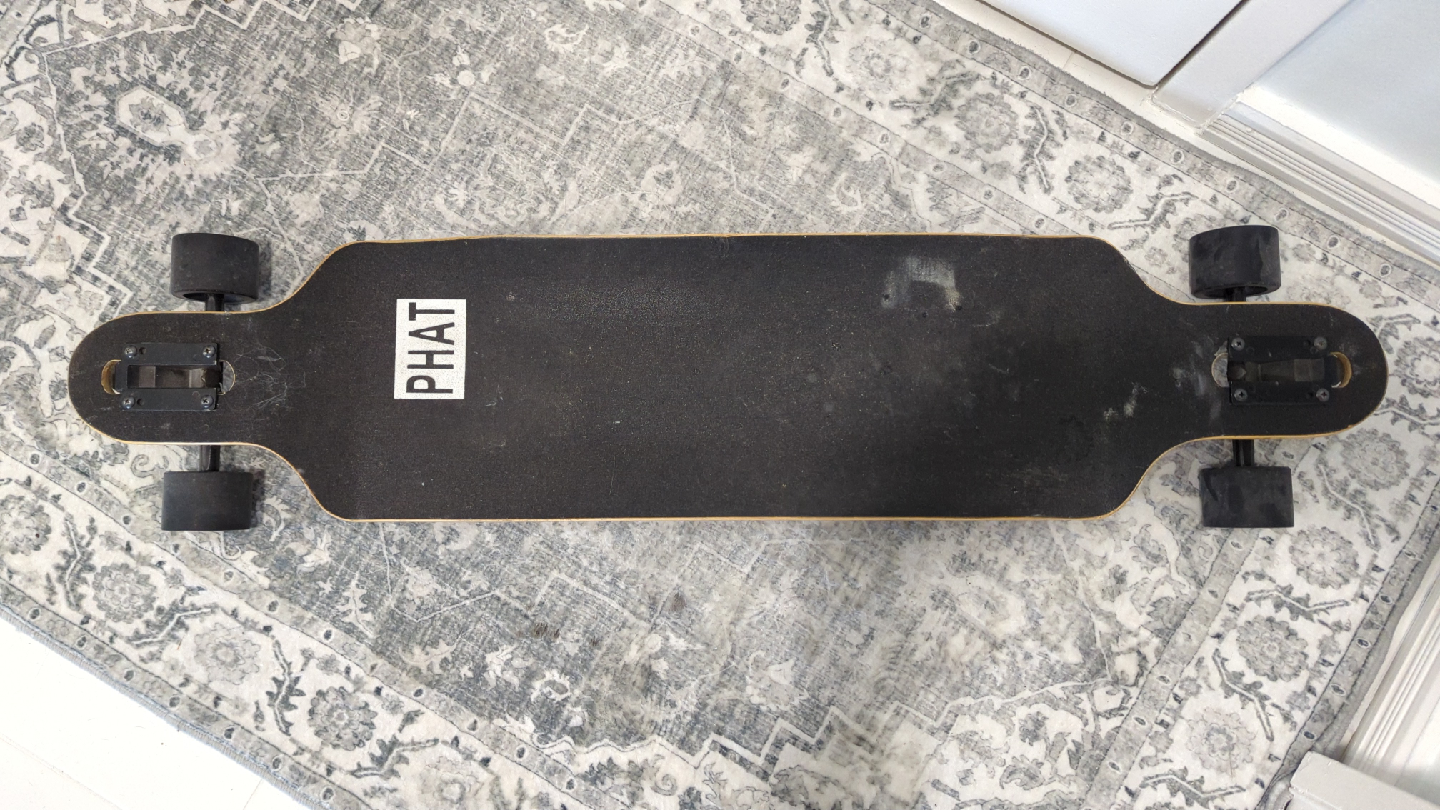 Selling a PHAT Drop-Through Deck Skateboard Complete Longboard. It measures 41 inches. Originally bought for $63.19 CAD.