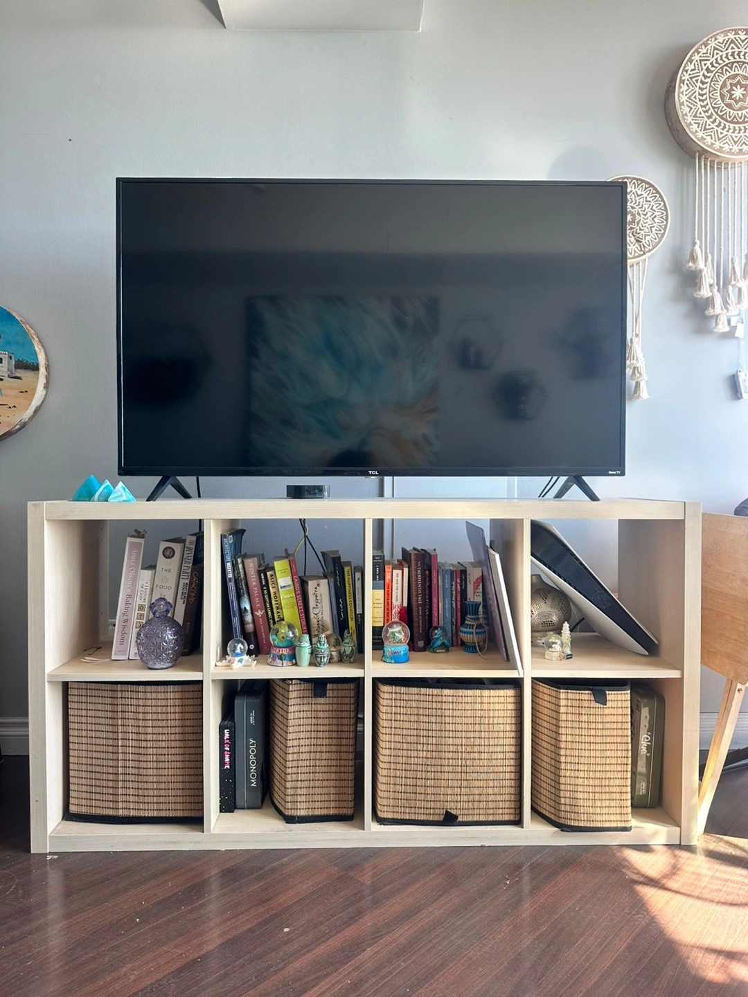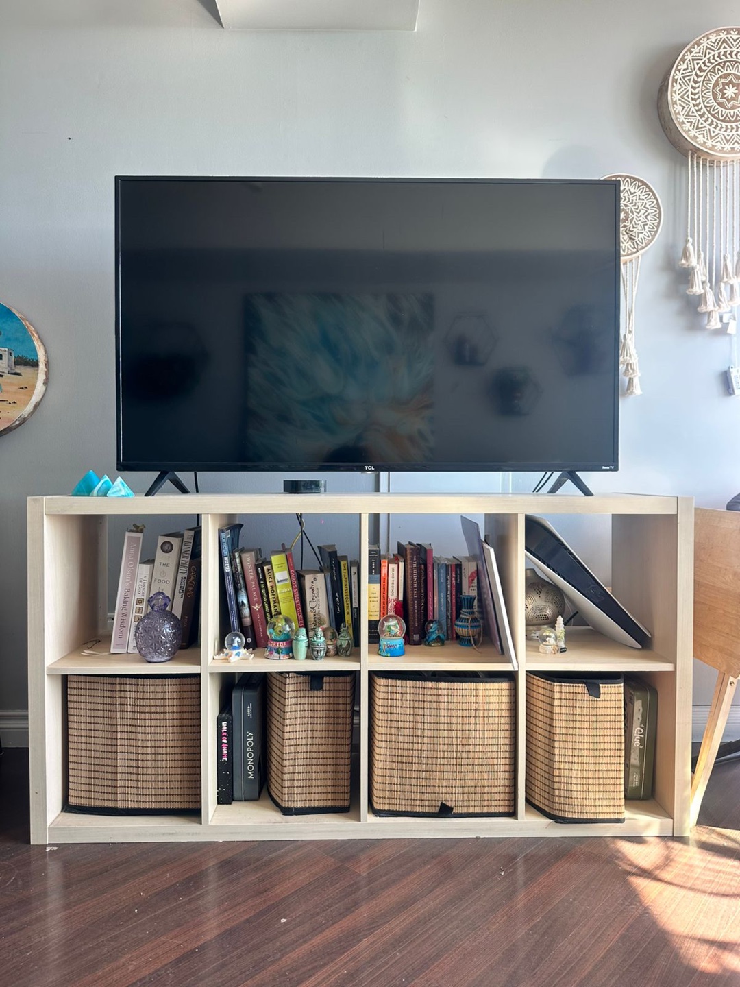 Selling a gently used IKEA Kallax shelf unit. It's in great shape and perfect for organizing books, toys, or anything else you need to store. Includes the woven baskets shown in the photos. This unit is super versatile and can be used horizontally or vertically to fit your space!