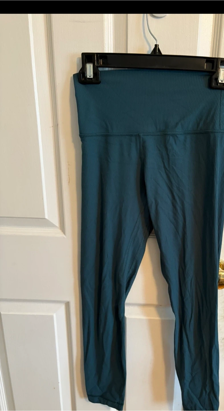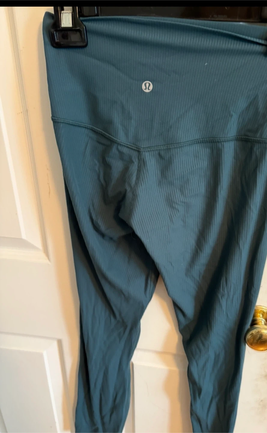 15Selling a pair of Lululemon Align high-rise leggings. They are a beautiful teal colour and feature a ribbed texture. Size 6 tight 25