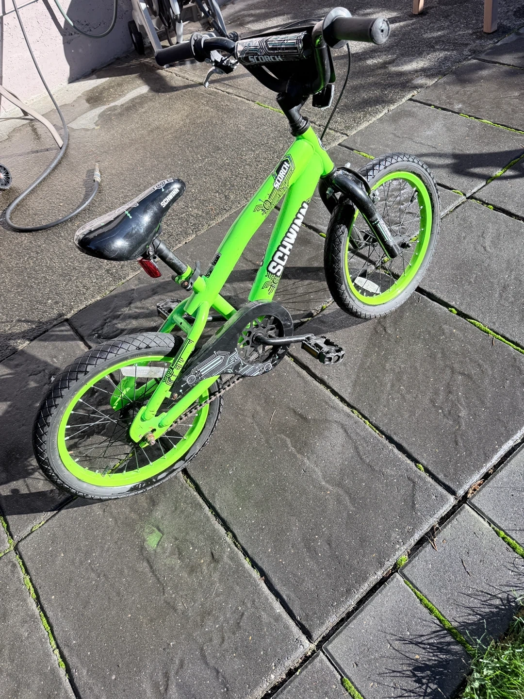 Selling a Schwinn Scorch kids' bike in a vibrant green! It's a great bike for learning and having fun outdoors. Perfect for kids ready to explore the neighbourhood or local trails. Ready for a new home!