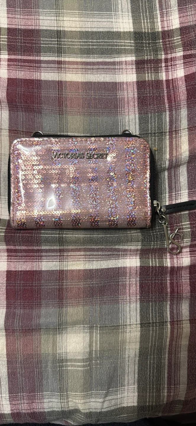 65Selling a cute Victoria's Secret wallet with sequins! It has a zipper closure and a black interior with card slots and a clear ID window. Perfect for adding a bit of sparkle to your everyday essentials