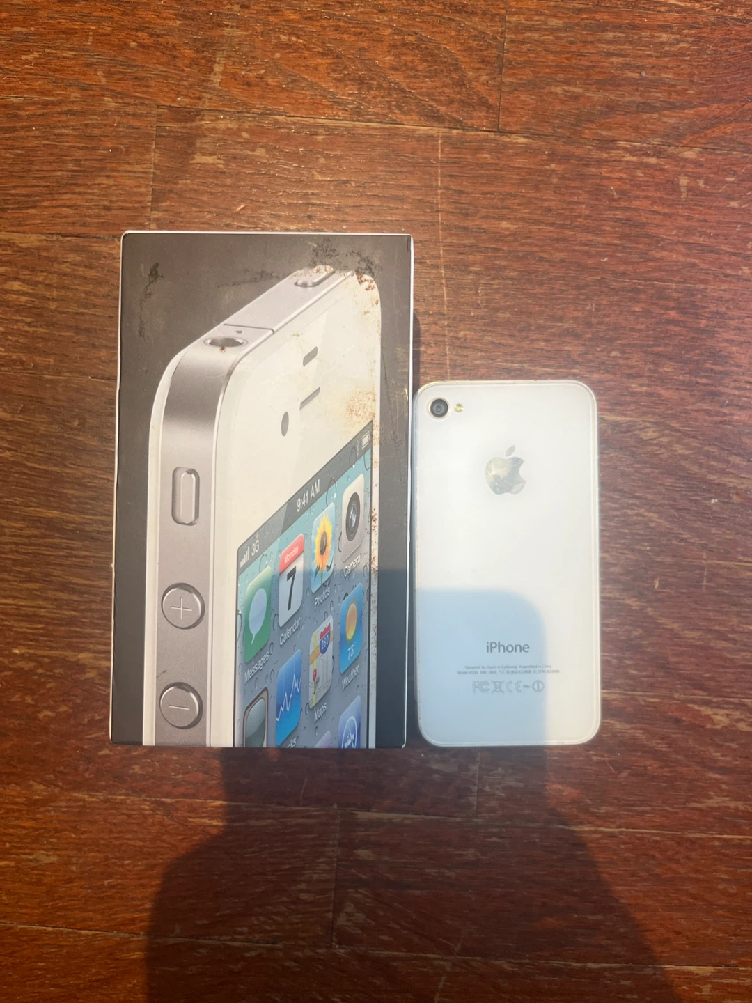 Selling a white iPhone 4S. It comes with the original box. It shows some signs of use, but the battery life isn’t so great. Great for someone looking for a basic phone for parts or a phone for a collection