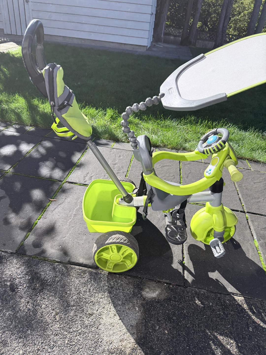 Selling a Little Tikes 4-in-1 Trike in great condition! This trike is perfect for little ones and grows with them. It features a removable canopy, adjustable seat, and parent steering handle. The bright green colour is sure to catch your child's eye!