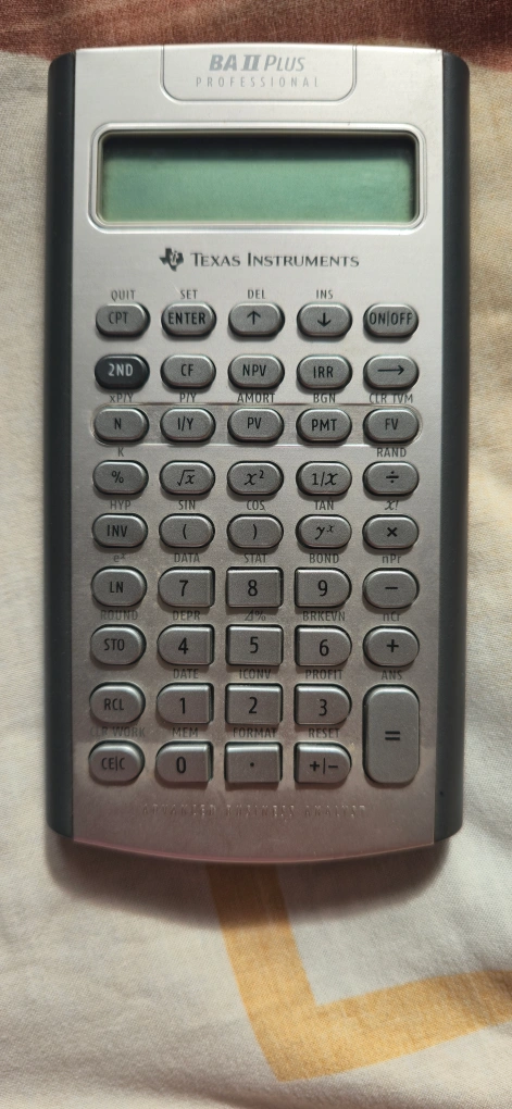 Selling a Texas Instruments BA II Plus Professional calculator. It's in great condition and perfect for business and finance calculations. A must-have for students and professionals alike!