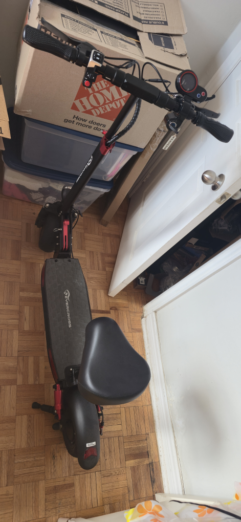 Selling an Evercross H5 electric scooter in black! It's in great shape and ready for a new owner. The scooter has a size of 12"x30"x46 cm and a net weight of 24 kg. The scooter has a digital display.