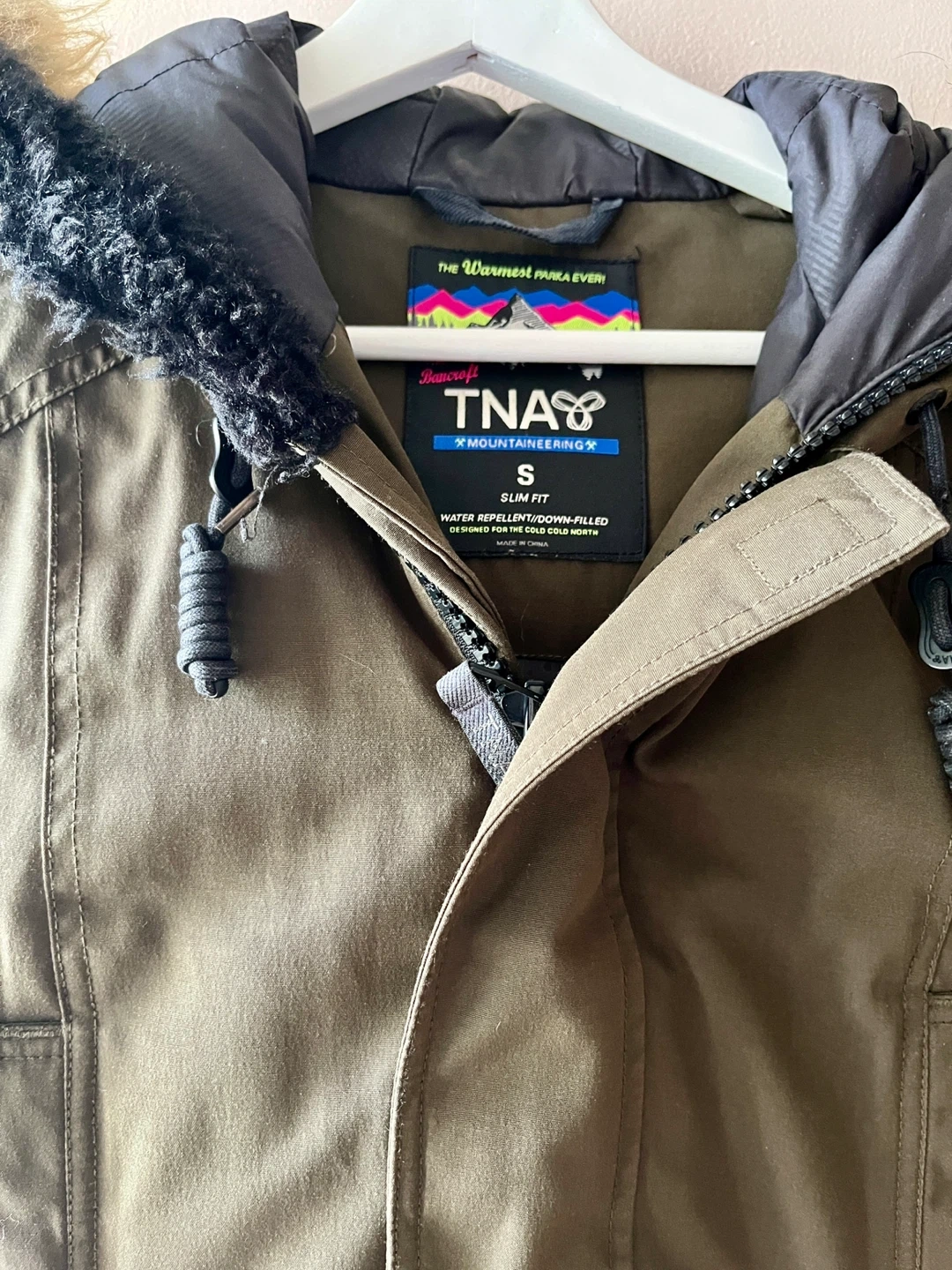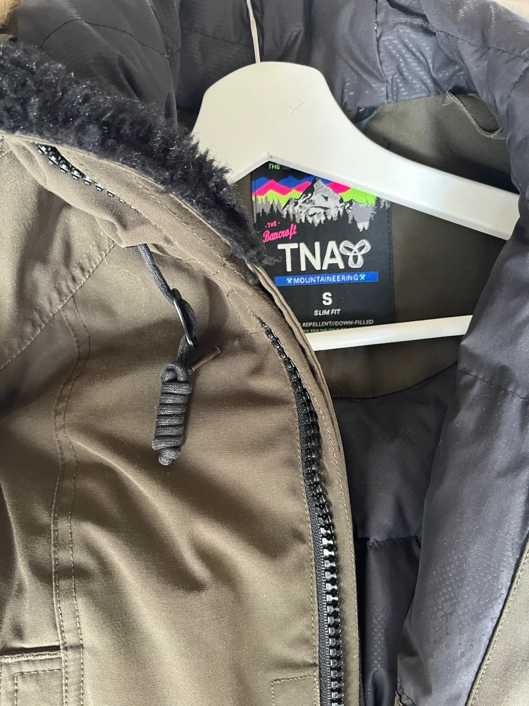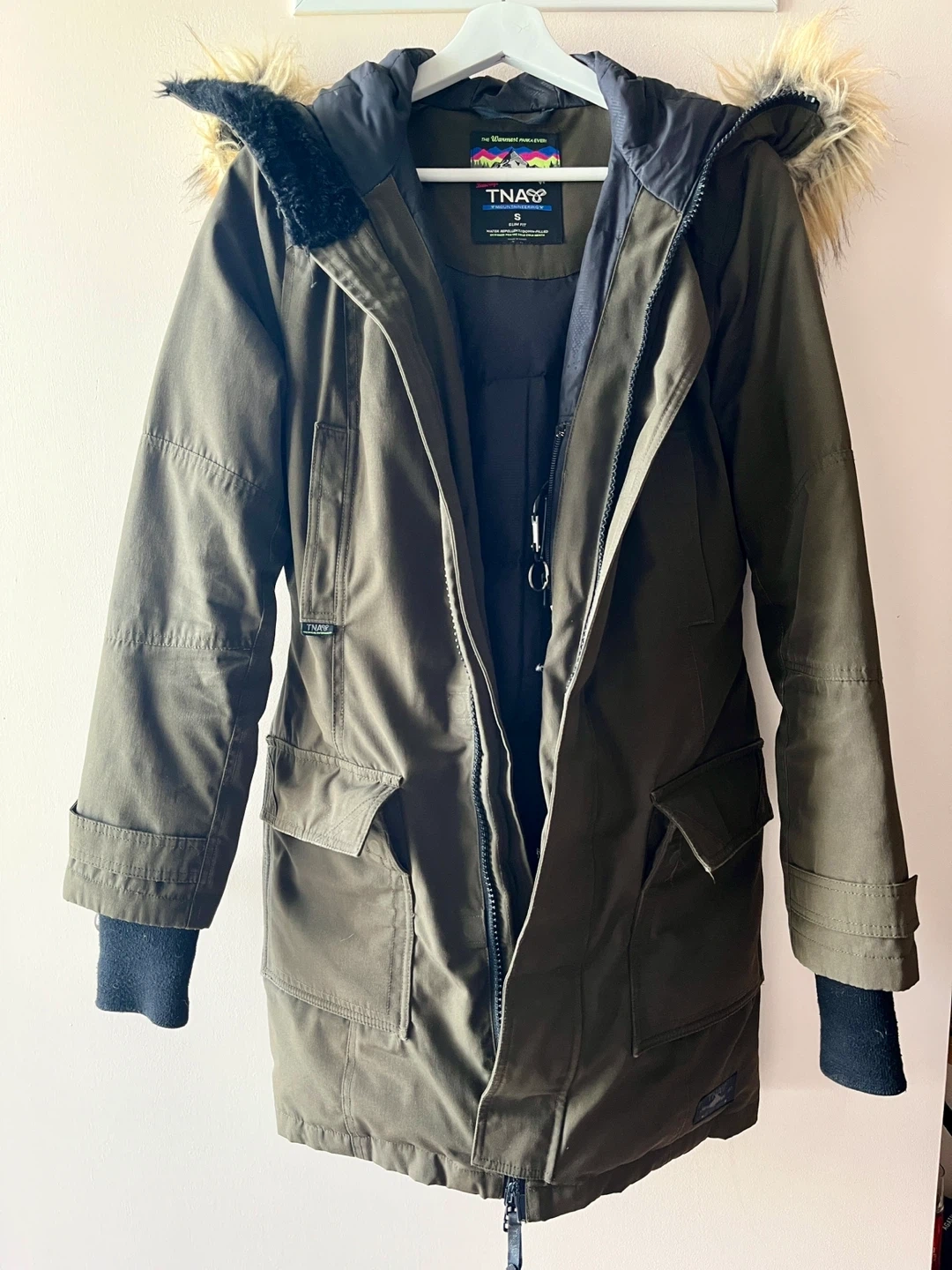 504Selling a TNA Bancroft parka in size small. Heavy duty parka ready to keep you warm this winter. Features a slim fit and is repellent/down-filled. Faux fur had to be replaced (I mistakenly washed it and put it in the dryer… 😬) so it’s not from the original design. This jacket has kept me warm from the biting cold on winter hikes so it’s definitely approved in harsh weather! Initially purchased for $350+.