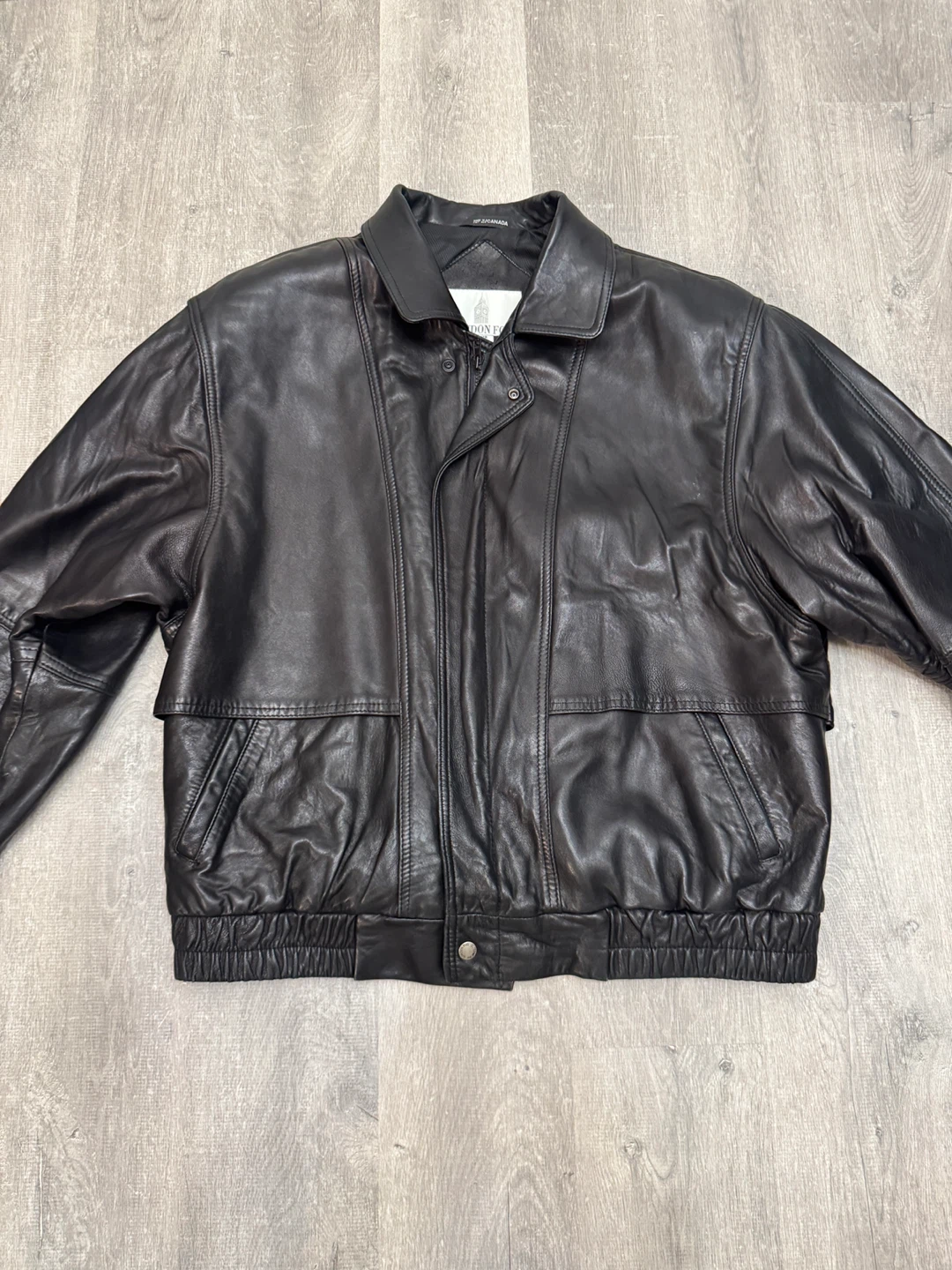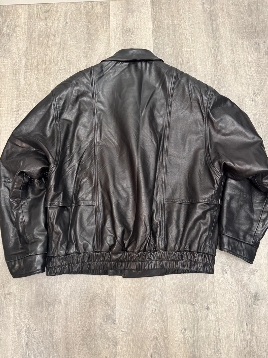London Fog black leather jacket in size 42R. Great for keeping warm and looking stylish!