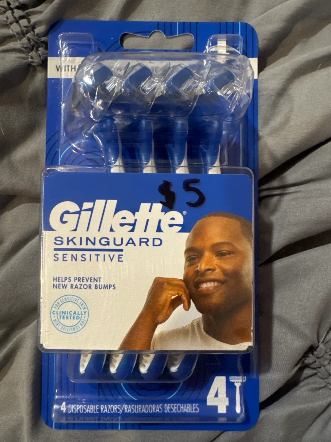 Selling a pack of Gillette SkinGuard Sensitive disposable razors. This pack includes 4 razors designed to help prevent new razor bumps and is clinically tested for sensitive skin. Great for a smooth and comfortable shave!