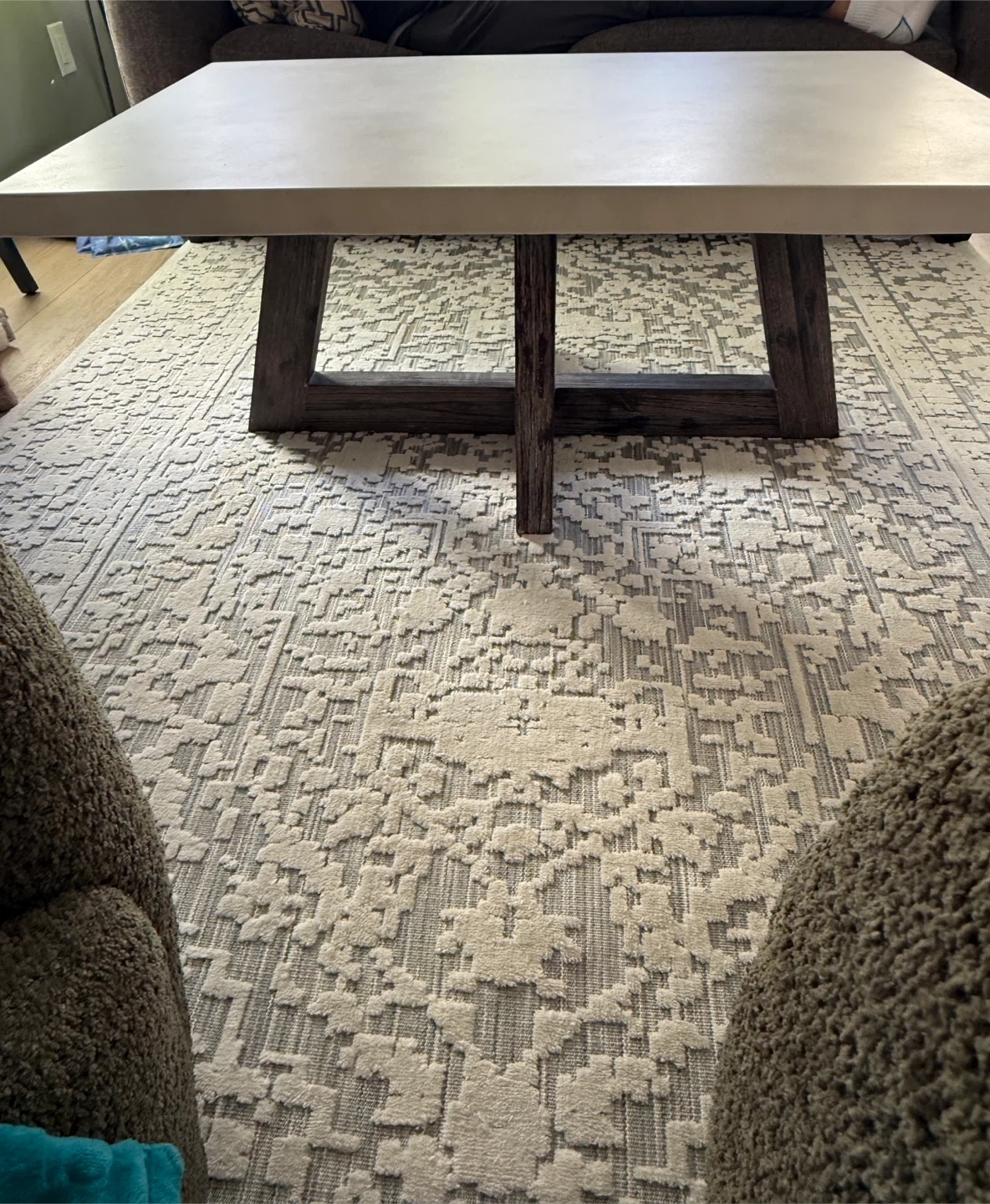 Selling a stylish concrete coffee table. It features a smooth concrete top and a sturdy wood base. It's a great addition to any living room!
