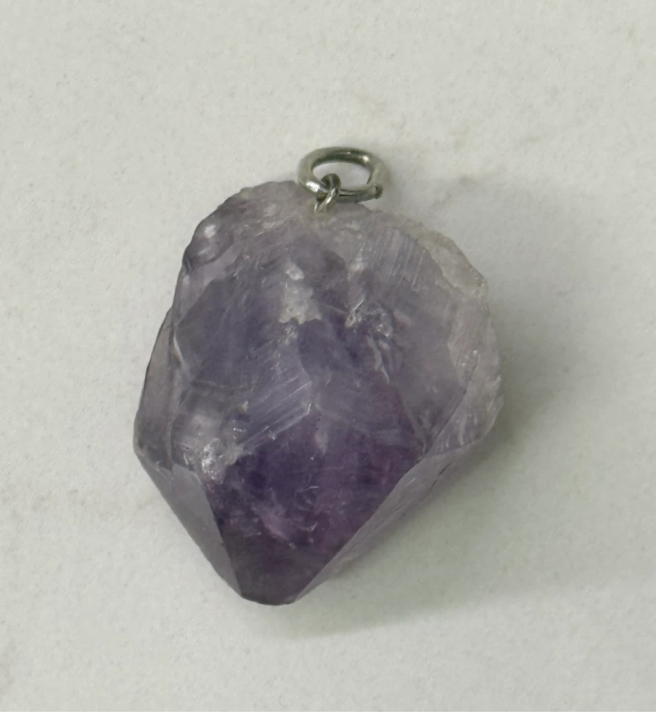 Vintage amethyst crystal pendant. It has a lovely deep purple color. Perfect for adding a touch of natural beauty to any outfit!