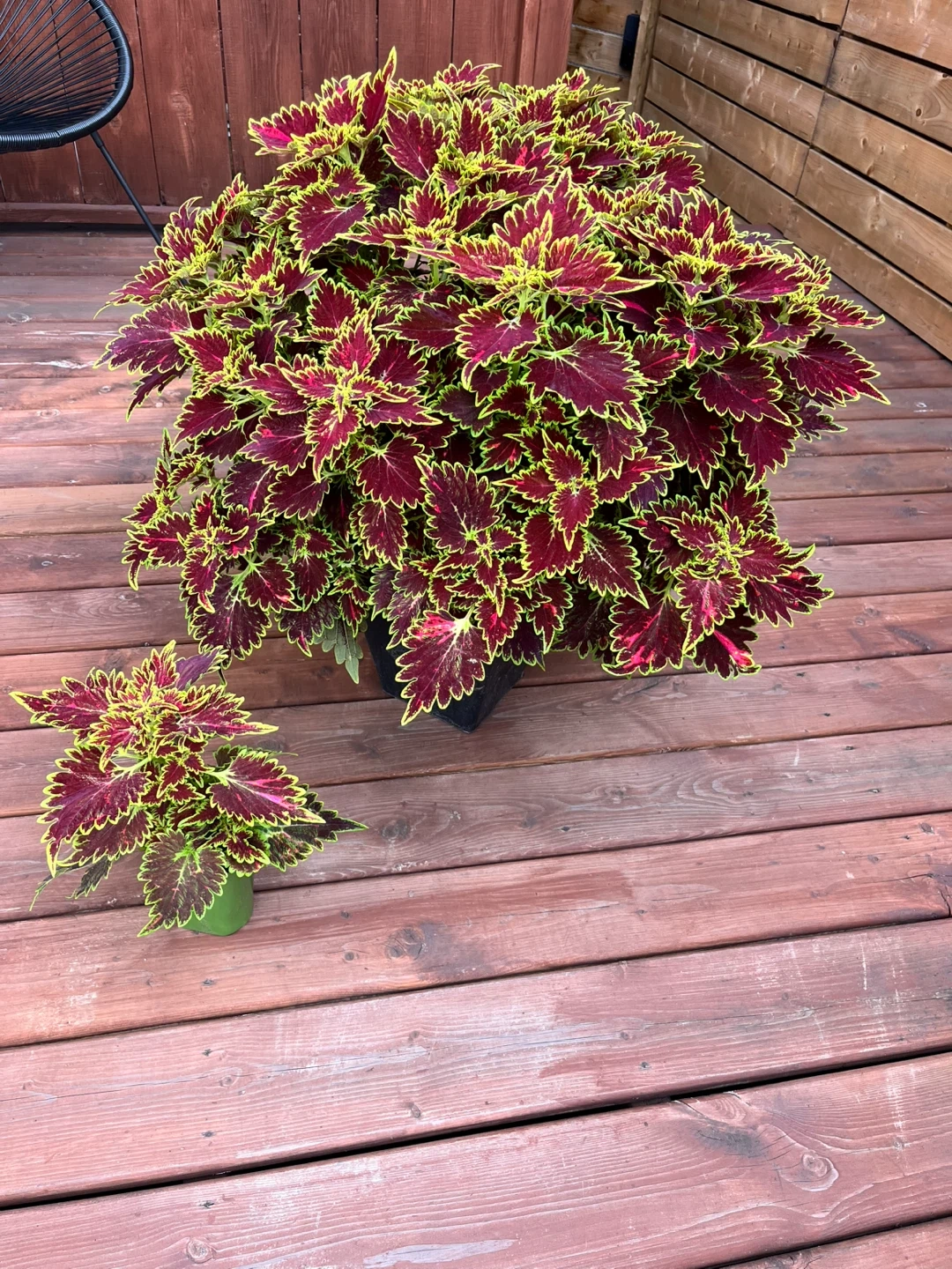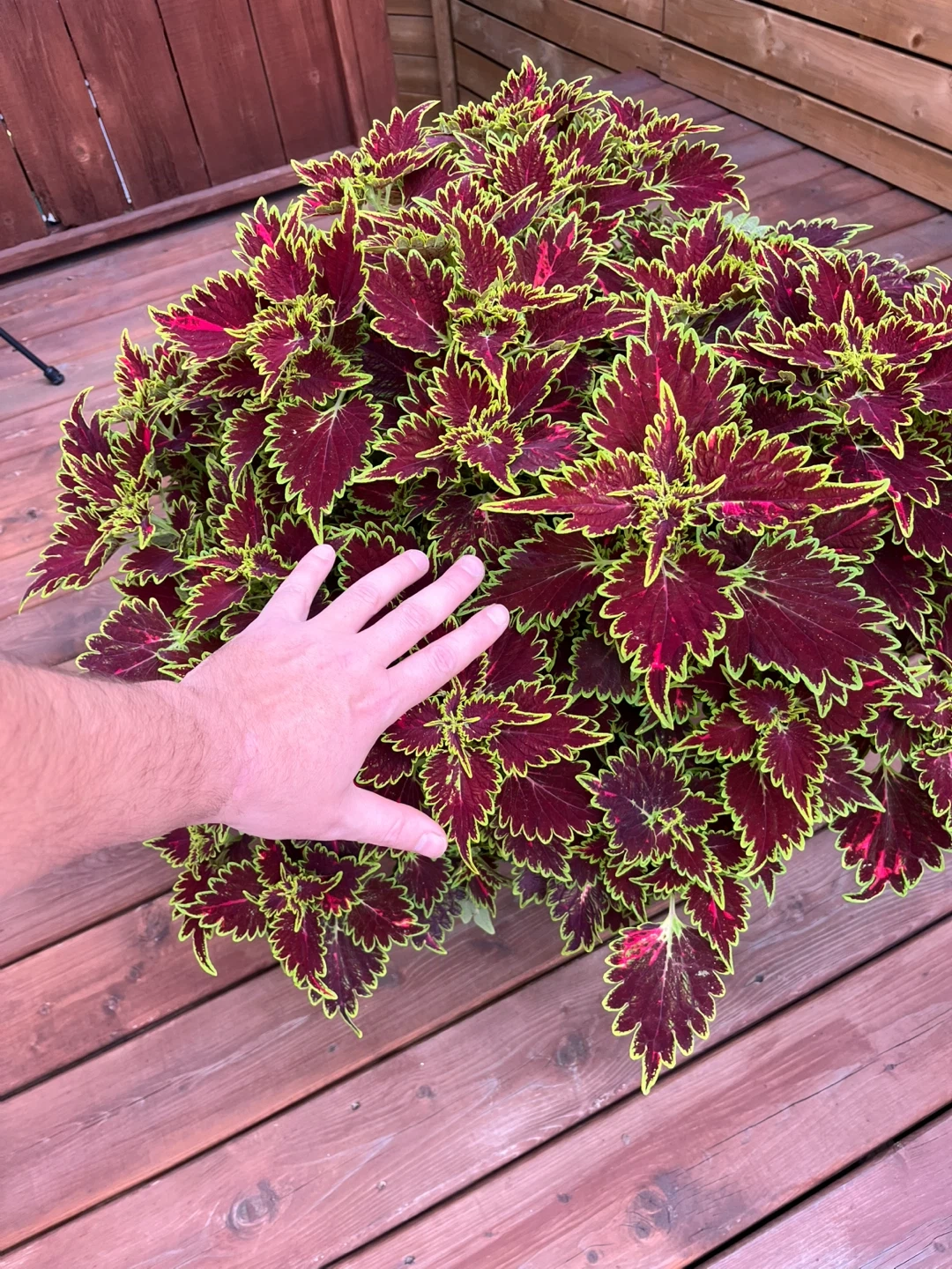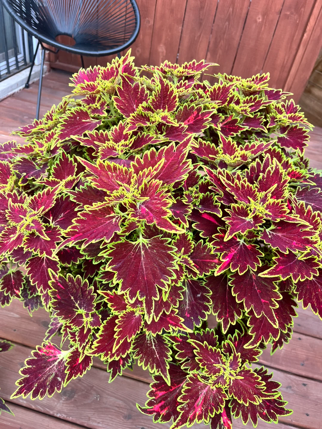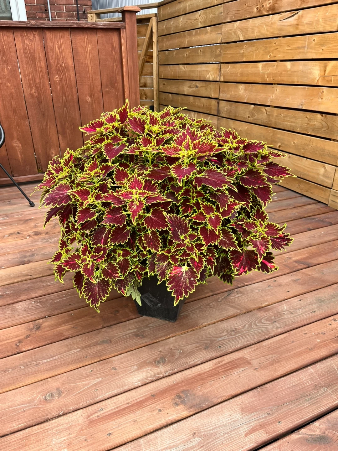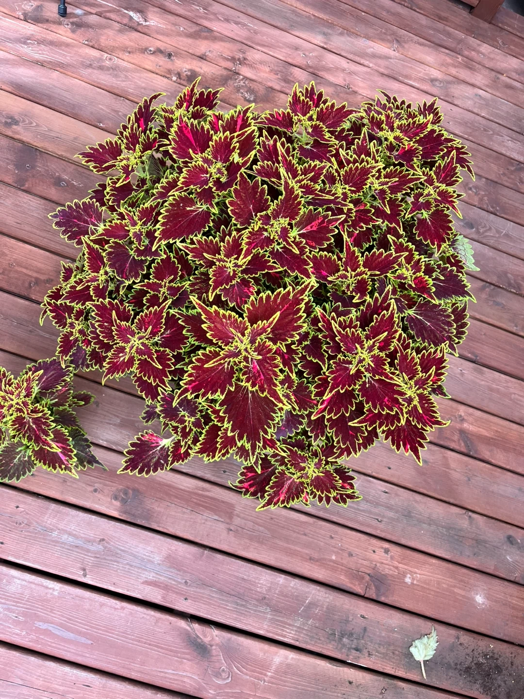 I'm selling a beautiful coleus plant. It has vibrant red and yellow leaves that are sure to brighten up any space.