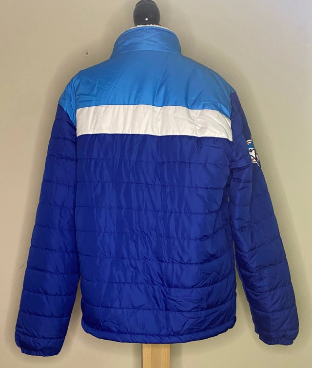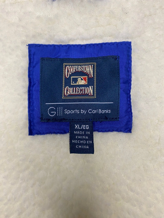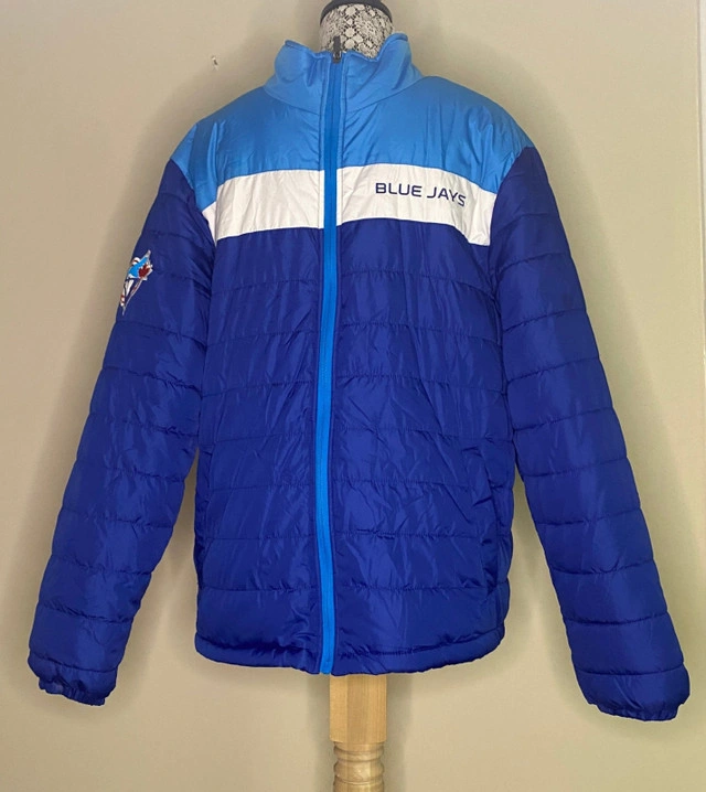 Step into timeless Blue Jays history with this Toronto Blue Jays Cooperstown Collection Puffer Jacket. This premium jacket is more than just outerwear, it is a statement of loyalty, pride, and love for the team that has created unforgettable baseball memories. Whether you are heading to the ballpark, watching the game at home, or braving cold Canadian winters, this puffer jacket keeps you warm while showing your Toronto spirit. When you wear this Toronto Blue Jays Cooperstown Collection Puffer Jacket, get set for a ton of questions as this beautifully and stylish jacket will definitely bring you some attention. As part of Major League Baseball's Cooperstown Collection, this vintage Blue Jays jacket provides you with a vintage design and modern function. Stay toasty when you are watching the Fall Classic as the puffer design will help you stay warm, making it perfect for colder weather, while still showing support for the your Toronto Blue Jays. From the color to design to the retro Blue Jays logo, this jacket breathes Blue Jays history. This Toronto Blue Jays Cooperstown Collection Puffer Jacket is an adult extra large. For sizing, please see the attached picture included with this listing. Although pre-owned, this retro Blue Jays jacket is in excellent condition with no rips, tears or stains. Local pickup is in Etobicoke near Islington and The Westway.