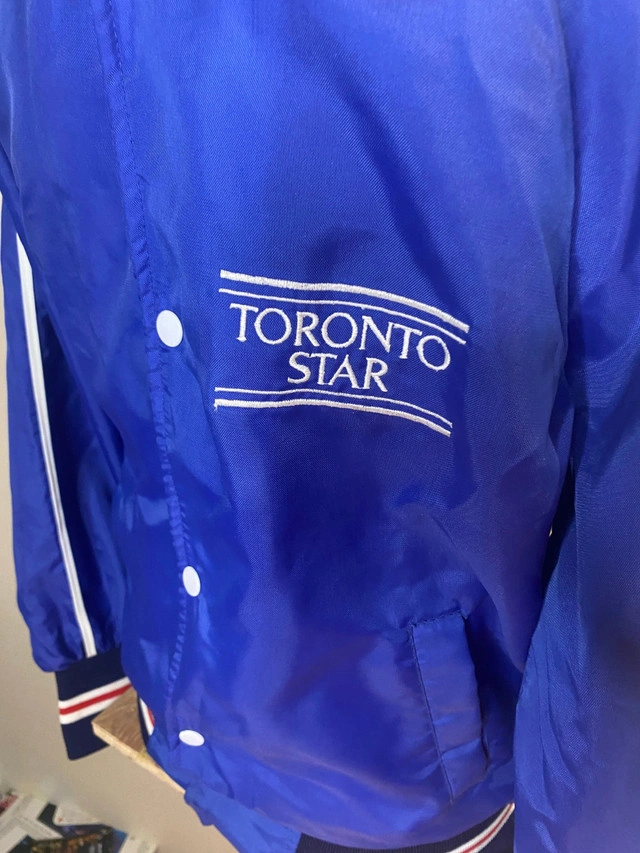 15Show off your nostalgic style with a Vintage Toronto Star Newspaper Jacket! This unique piece pays tribute to the history of Canada’s most iconic newspapers, The Toronto Star. Featuring a sleek, retro design with Toronto Star branding, it is perfect for collectors and vintage clothing collectors or those who cherish Toronto’s history. This jacket combines timeless appeal with practicable function and can be worn with casual clothing styles. Don’t miss your chance to own a piece of Toronto’s legacy before it is gone. This is an adult small Toronto Star Newspaper Jacket. For sizing specifics, please see the attached measurement guide included with the pictures in our listing. Local pickup is in Etobicoke near Islington and The Westway.