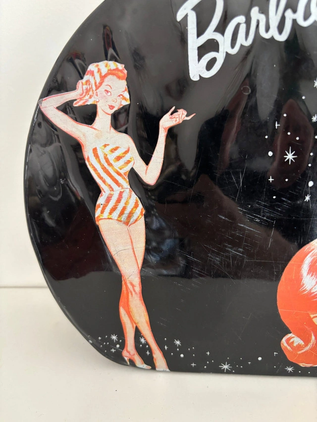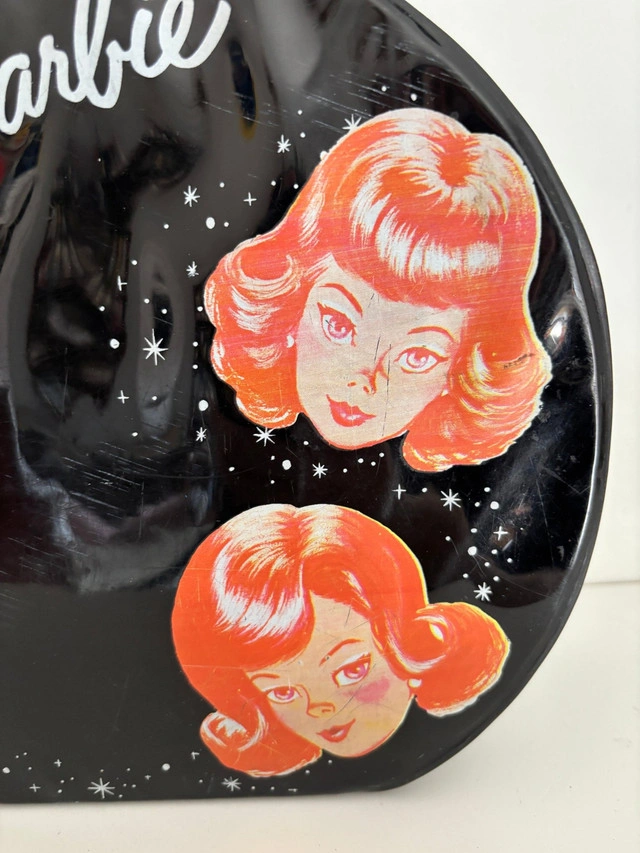 15Own a piece of Barbie history with this rare Canadian Mattel Barbie Fashion Queen Doll Case from the 1960s. A fantastic case to store your Barbie dolls and accessories that epitomizes the classic look and style of Barbie collecting. Store your Barbie dolls and accessories with retro charm and place this on display to showcase part of your collection. This collectible and sought after Barbie case set is perfect for collectors and enthusiasts to have as a display piece or classic storage item. It features authentic Mattel branding, vibrant colors, and will become a welcome piece in your Barbie collection. Please note that the zipper functions, however the tab on the zipper is missing as pictured. Local pickup is in Etobicoke near Islington and The Westway.