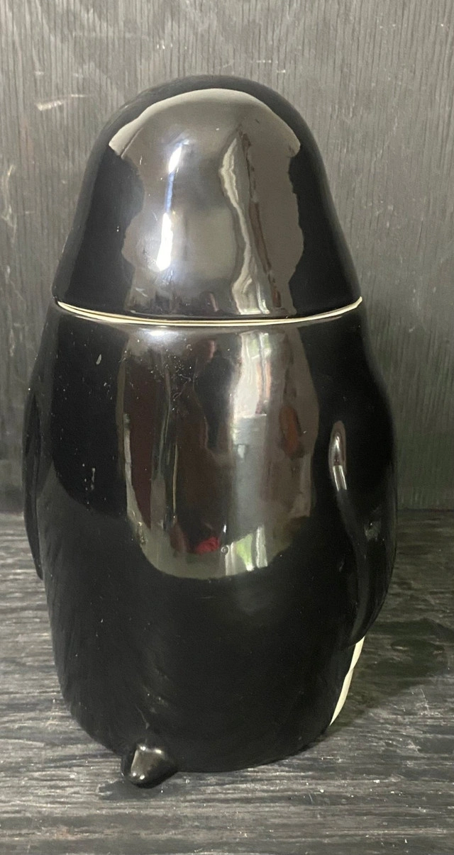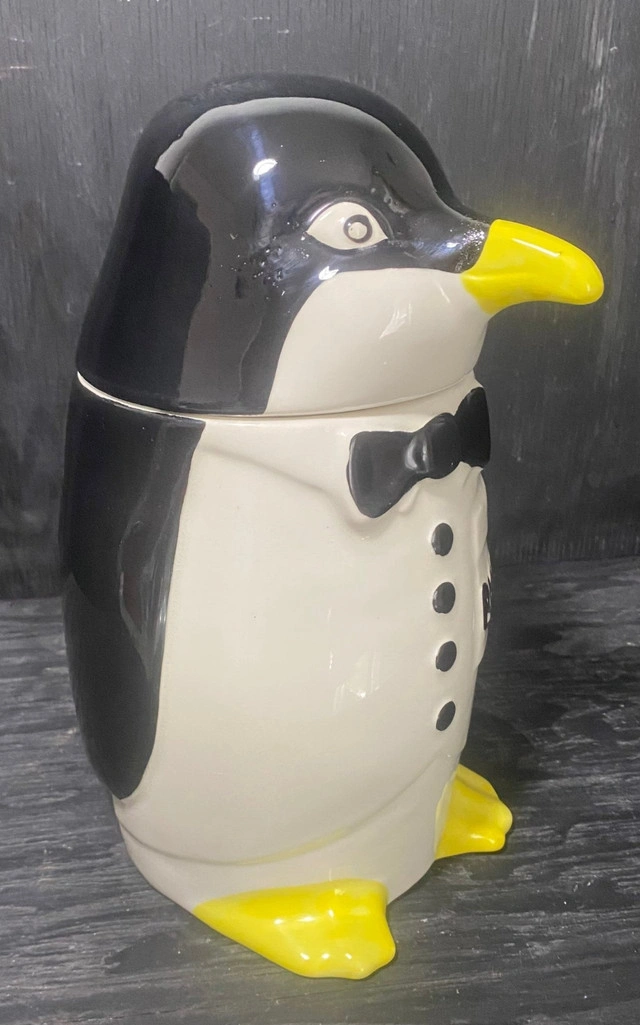 Give your cookies a unique home in this phenomenal Price Kensington Penguin Biscuit Jar. A wonderful and cheerful addition to your kitchen counter or dining area, it has a classic penguin design, a friendly expression, and iconic black and white coloring all topped off with a bowtie. It will help keep your cookies and biscuits fresh while adding the perfect, fun accent to your home. This Penguin shaped cookie jar is designed to be a cherished part of your daily routine and a conversation piece for guests. Ideal for cookie jar collectors, penguin and animal fans and those that need that special piece to set off a special space in the home. Imagine the delight of children (and adults) when they see this cheerful penguin on your counter. It is for family baking days, for afternoon tea, and for secretly sneaking a midnight snack. Add a touch of timeless charm to your home. Make the Price Kensington Penguin Biscuit Jar the keeper of all of your sweet moments. Local pickup is in Etobicoke near Islington and The Westway.