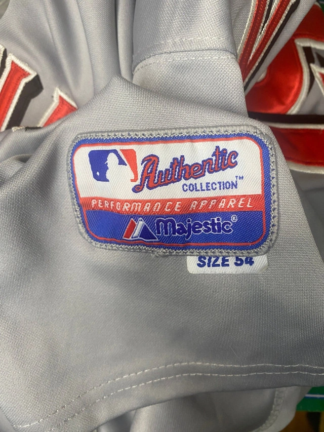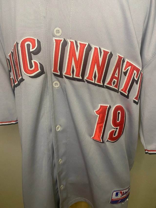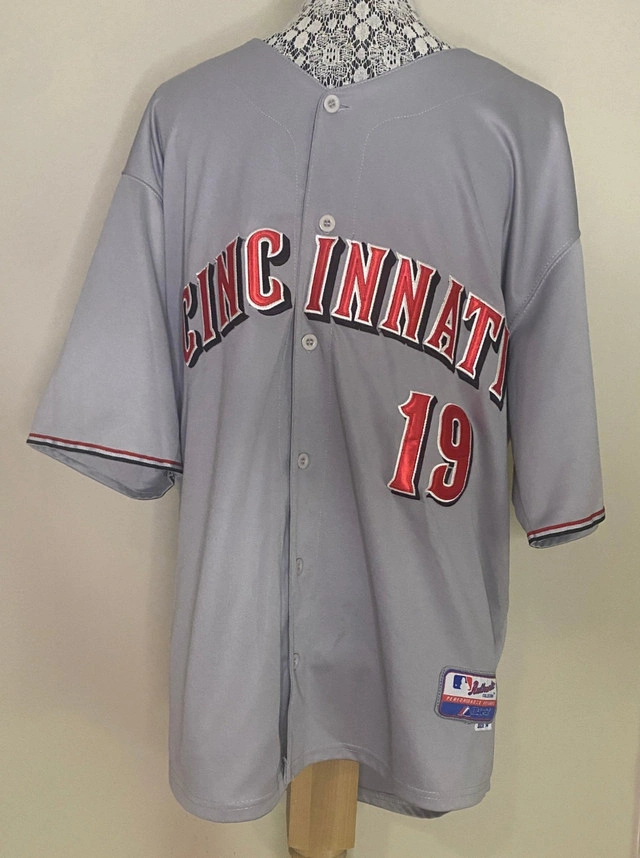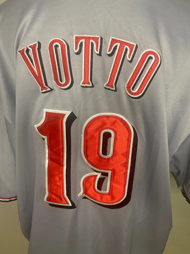 15One of the greatest Canadians to ever play baseball, you can now wear this greatness with this awesome Joey Votto Cincinnati Reds Full Button Majestic Jersey. With 2,000 hits, 300 home runs and 1,000 career RBI's along with an NL MVP award, 6 All-Star appearances, a 7 time Tip O'Neill Award winner, and 2 time Lou Marsh Trophy winner as Canada's athlete of the year, Joey Votto is one of he greatest Canadian athletes of all time. The full twill package on this button down baseball jersey features Joey Votto's name and number and the reds logo and lettering. This great Joey Votto Cincinnati Reds Full Button Jersey is a size 54 or XXL. For sizing specifics, please see the attached measurement guide included with the pictures in our listing. Local pickup is in Etobicoke near Islington and The Westway.