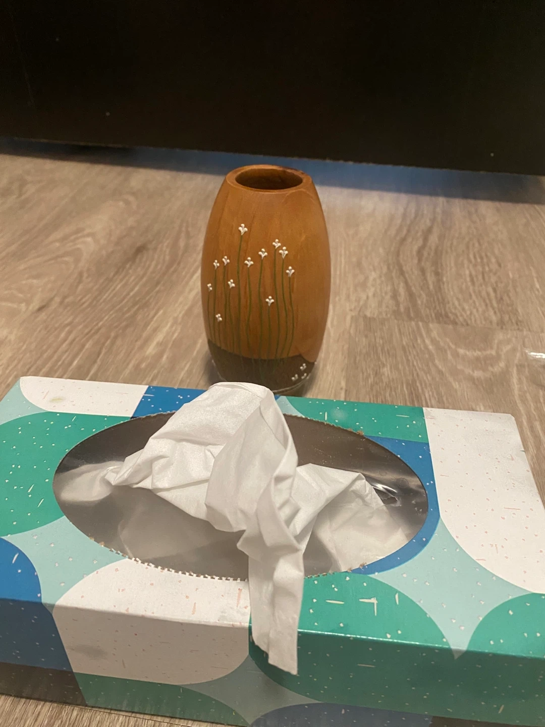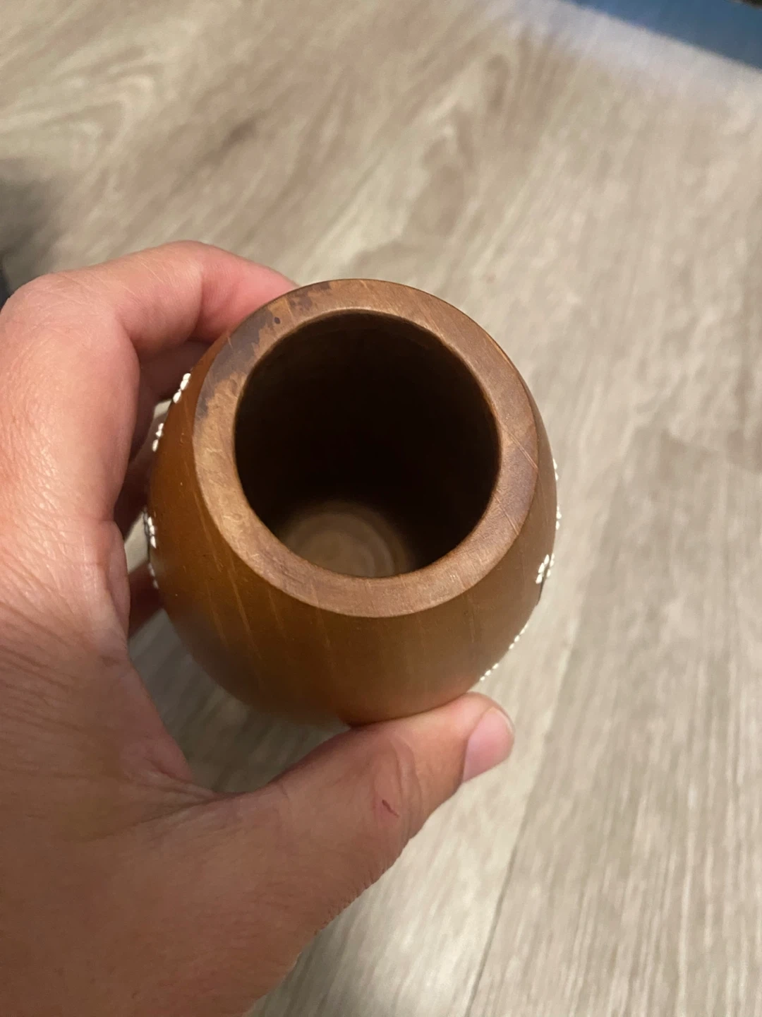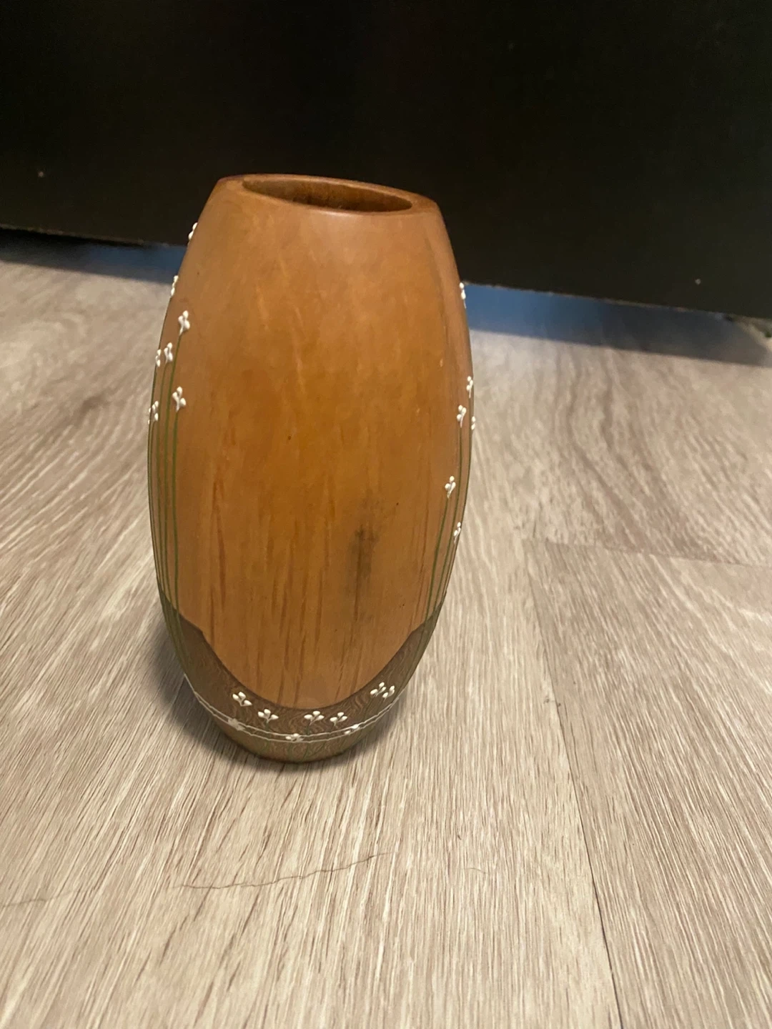 A cute wooden small vase, perfect for displaying flowers or as a decorative piece! It has a lovely floral design painted on it, adding a touch of nature to any room.