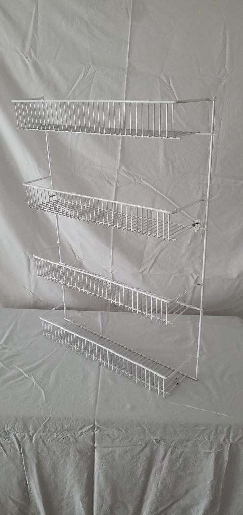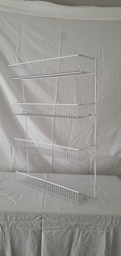 Wire frame shelf for storage. Two points to screw into wall with. Comes with two screws.