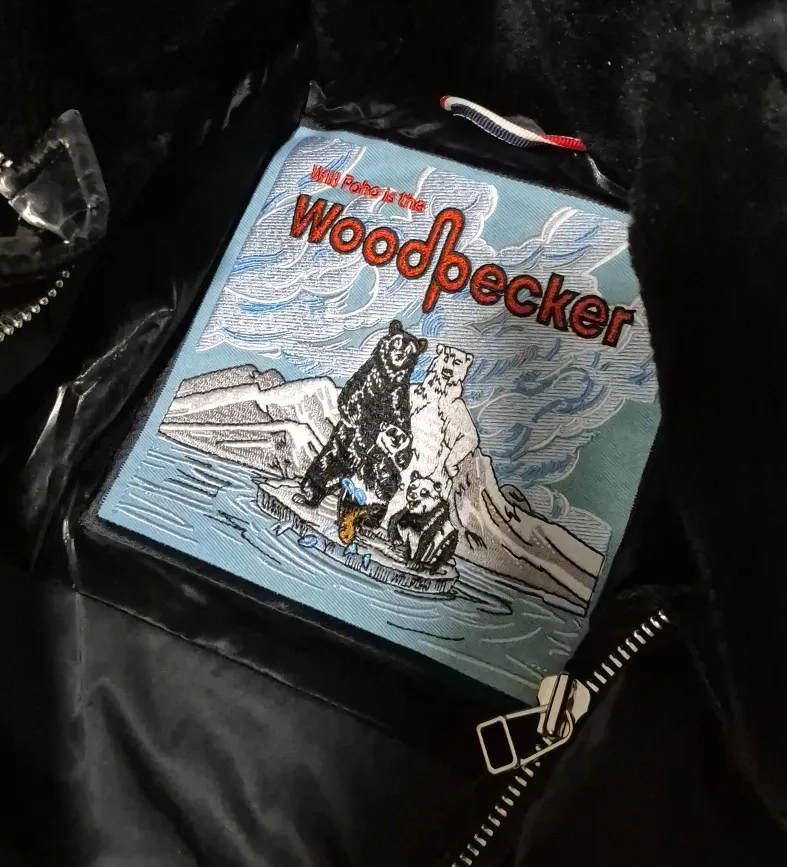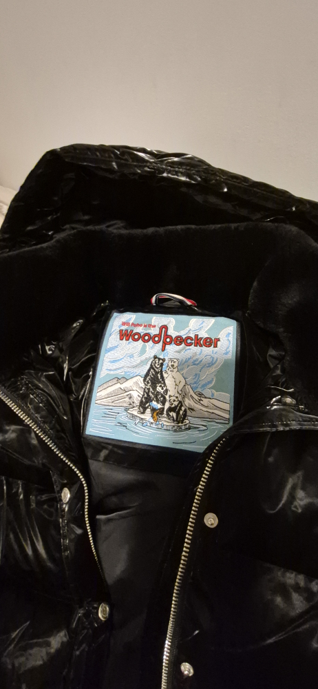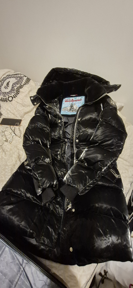 Selling a black Woodpecker puffer coat. It's in great condition and ready for the Canadian winter! The coat features a unique design on the inner lining.