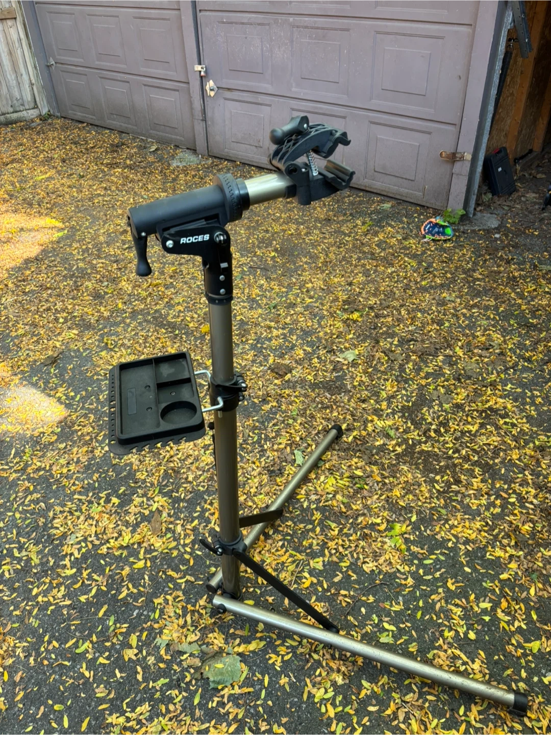 120Selling a ROCEB bike repair stand. It's in great condition and ready to help with your bike maintenance needs! Perfect for any cyclist looking to keep their bike in top shape