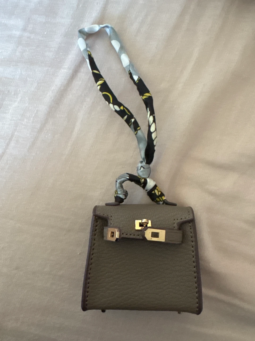 Selling a cute charm! It's in great condition and perfect for adding a touch of luxury to your everyday style. The charm features a leather body with gold hardware and a silk handle.