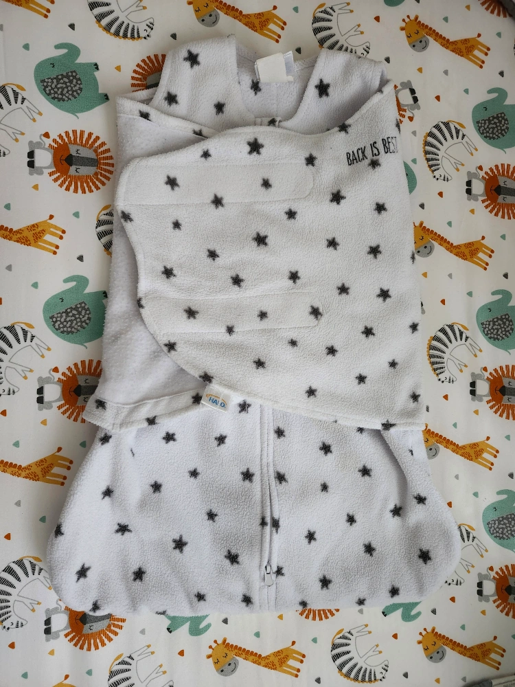 43Keep your little one snug as a bug with this Halo Sleepsack Swaddle! It's white with a cute star pattern and features the 'Back is Best' design. Perfect for safe and sound sleep! Made out of fleece making it perfect for winter.