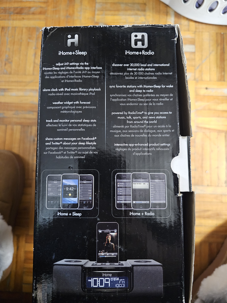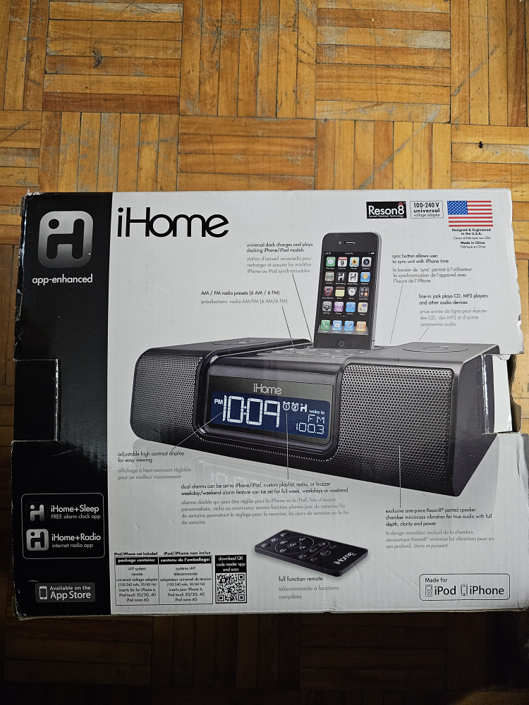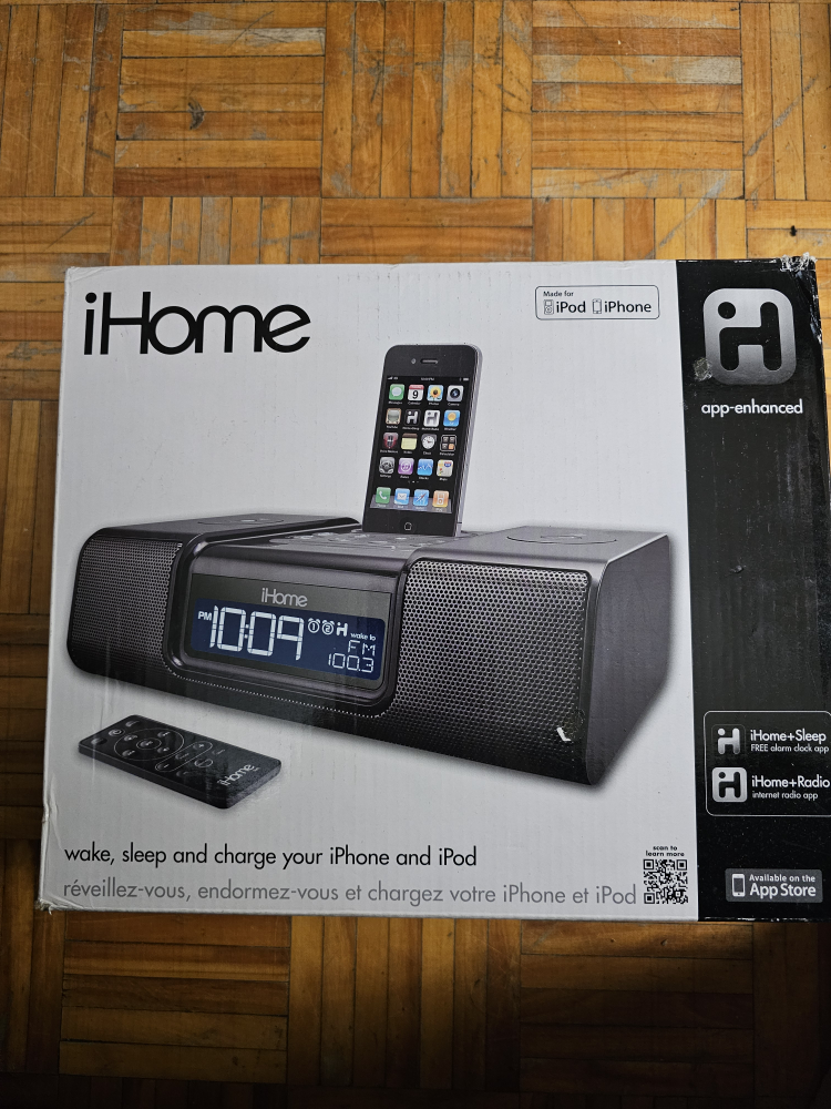 Hi, I'm selling this iPod/iPhone AM/FM radio alarm clock is brand new in box, has never been used. It is an older iHome, see image 4 at the bottom left. It is probably great for younger kids with older phones or anyone who just wants an AM/FM radio alarm clock. Item is ready for pick up, no delivery.