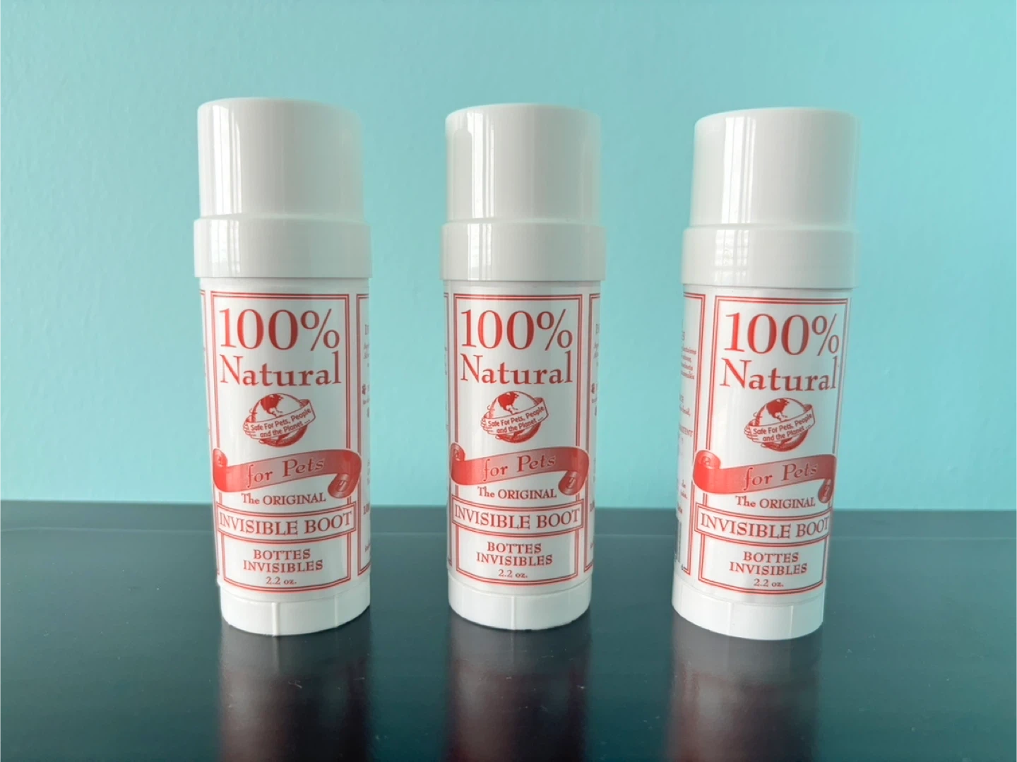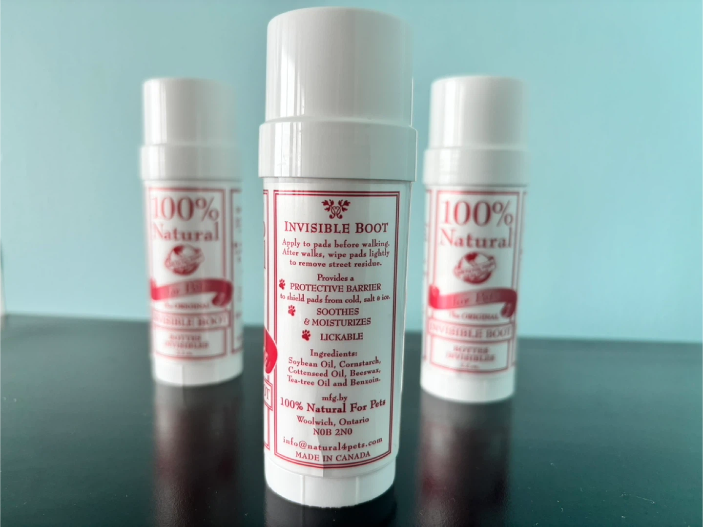 Keep your furry friend's paws protected with Natural For Pets Invisible Boot! This 100% natural formula creates a protective barrier against cold, salt, and ice. It soothes and moisturizes, leaving your dog ready for any adventure. Lickable and safe, with ingredients like soybean oil, cornstarch, cottonseed oil, beeswax, tea-tree oil, and benzoin