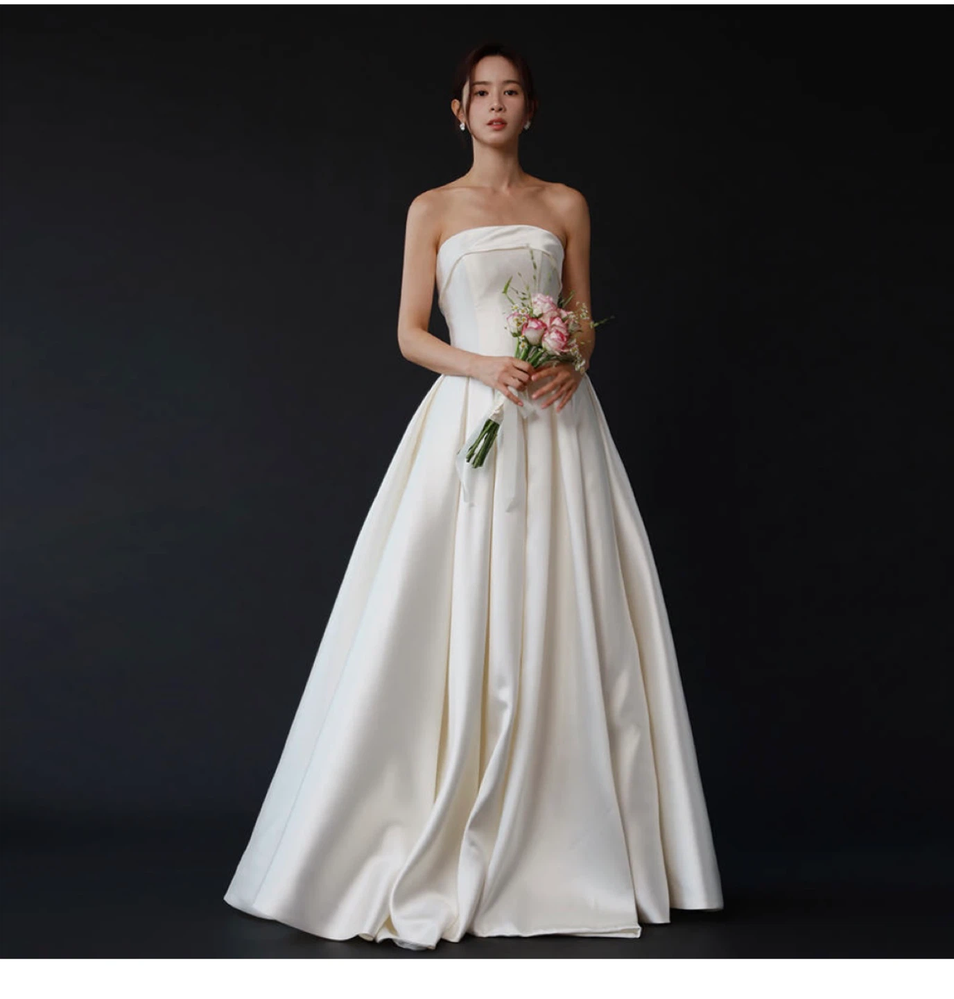 Elegant and timeless wedding dress with a beautiful satin glow. I bought it from Korea.
