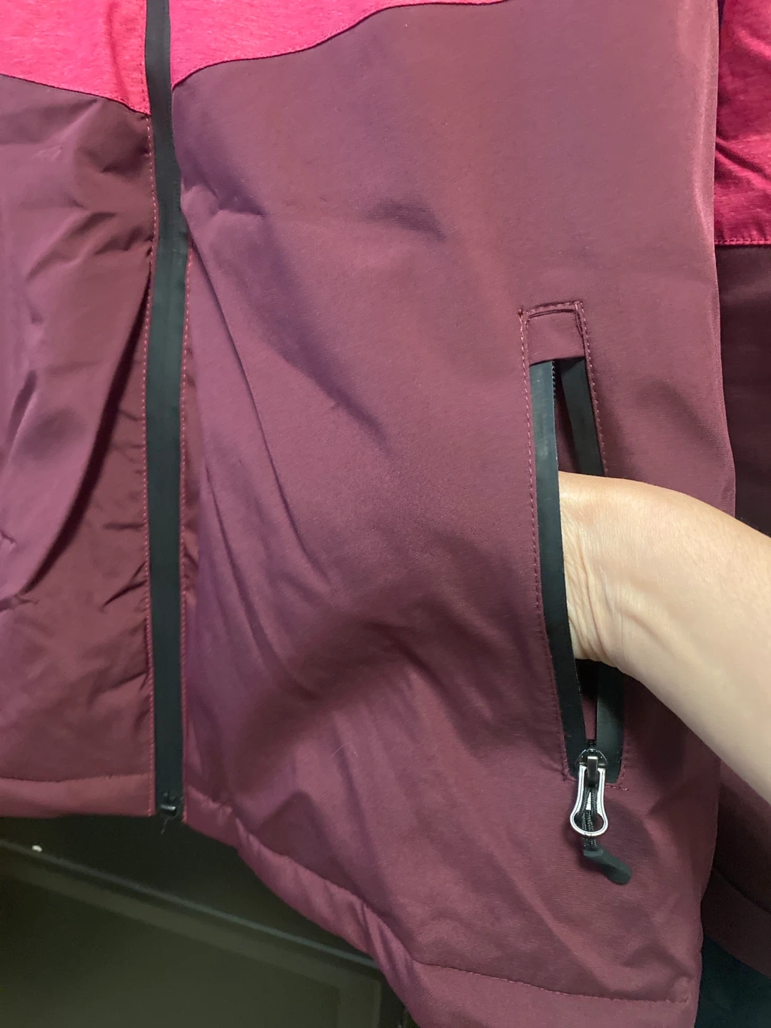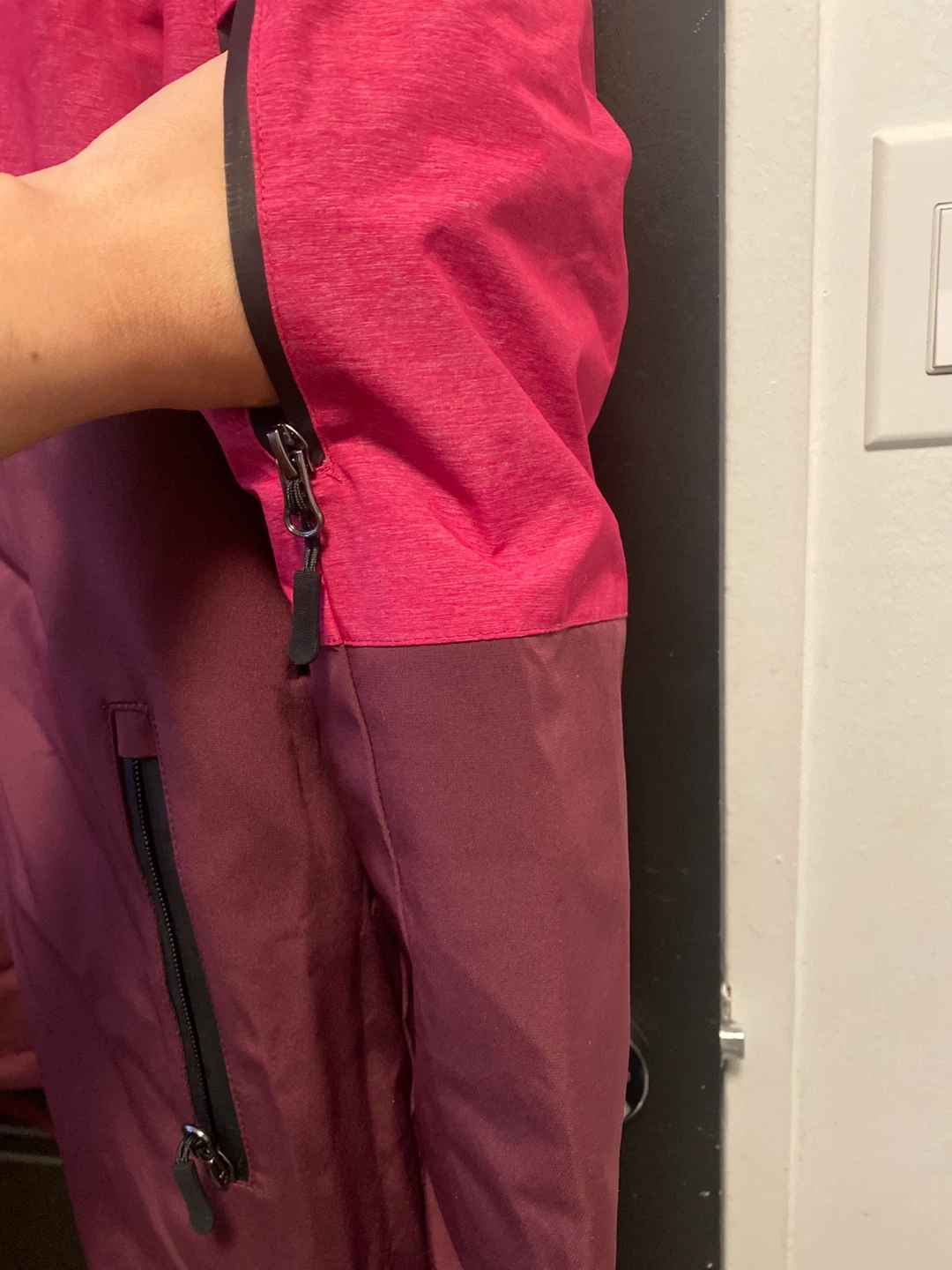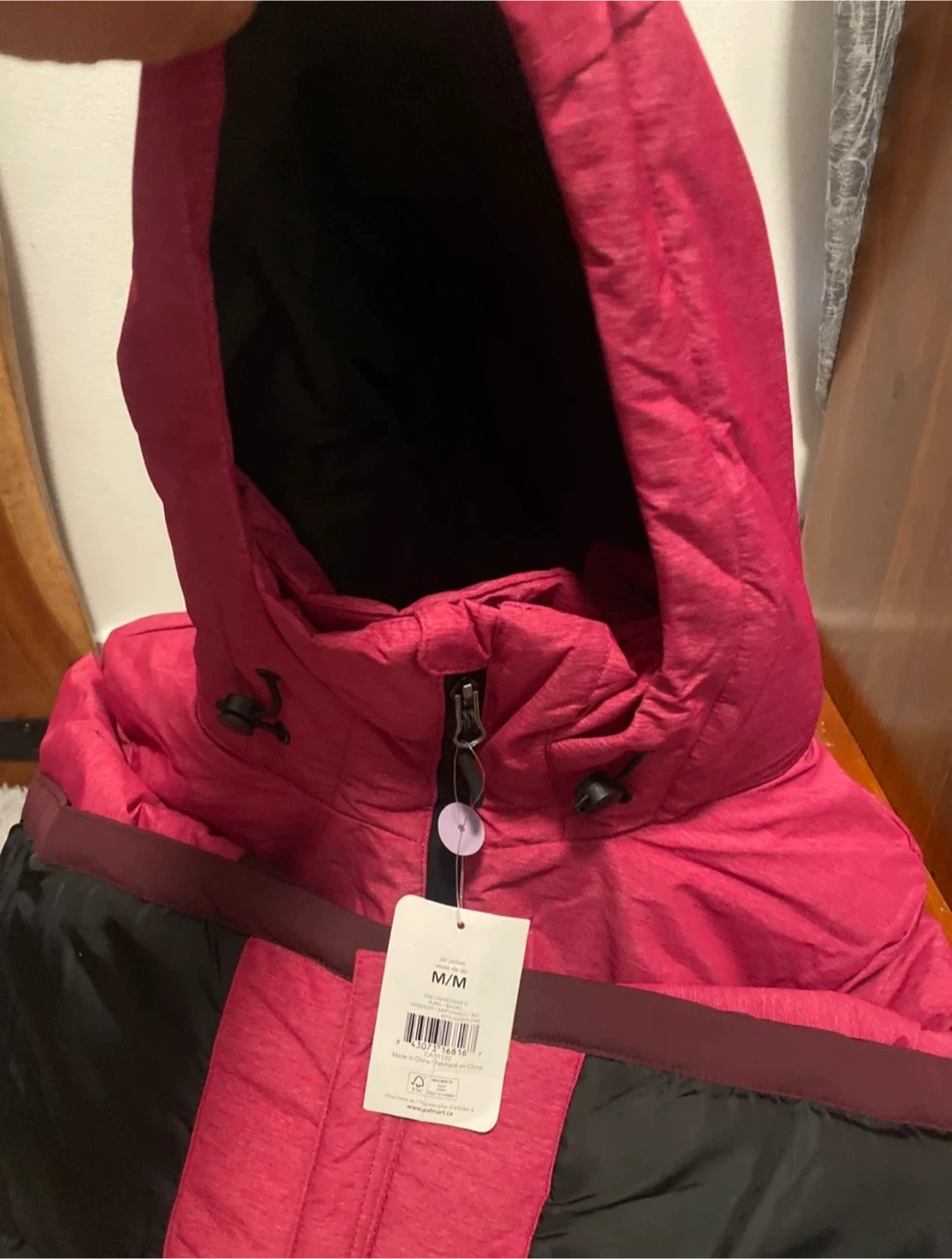 I'm selling a brand new Athletic Works performance snow jacket! It's a ladies size M/M and features a stylish pink and Burgundy design. The jacket is made with recycled materials and originally retailed for $59. Perfect for staying warm and dry this winter season.