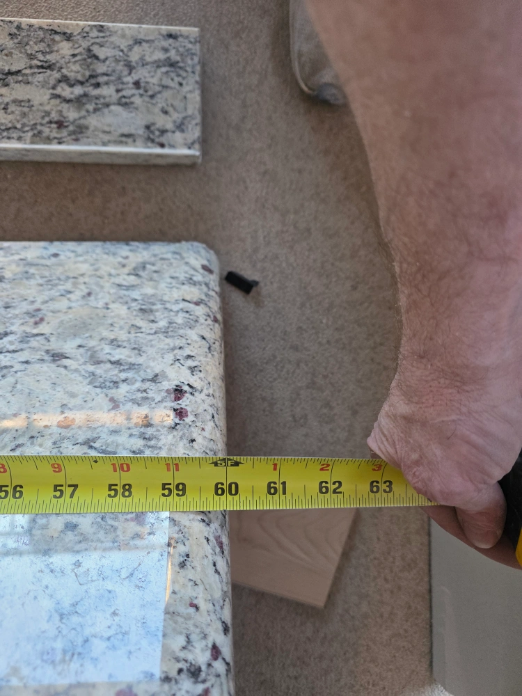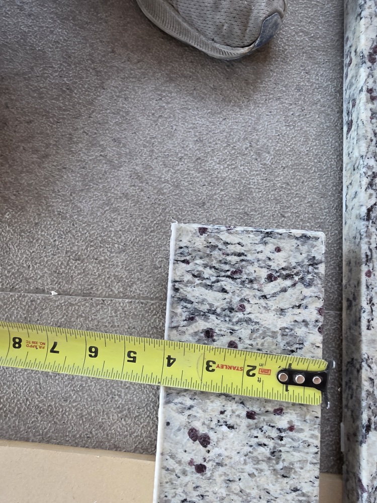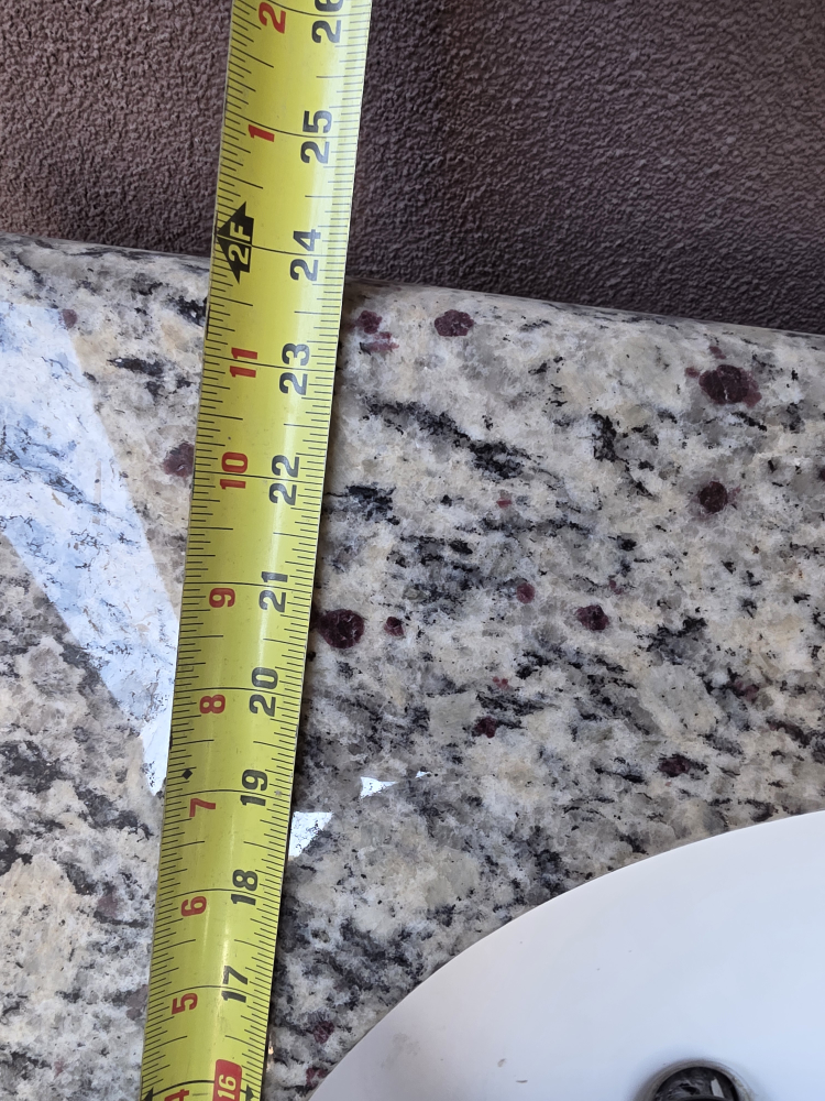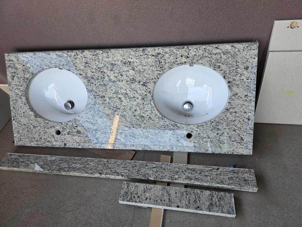 Selling a used granite double sink vanity top. It measures approximately 60 inches in length and 24 inches in width with 4 inch back splash. Great for a bathroom renovation! no cracks or chips.